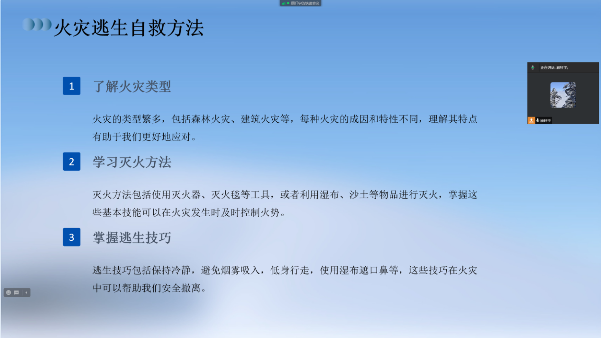 顾轩宇从安全教育、应急事件汇报、逃生技巧等方面进行了讲解,同时强调了实习安全对实习的重要性。列举一些常见的实习安全事故案例,让学生了解这些事故发生的原因和后果,从而增强他们的安全意识。