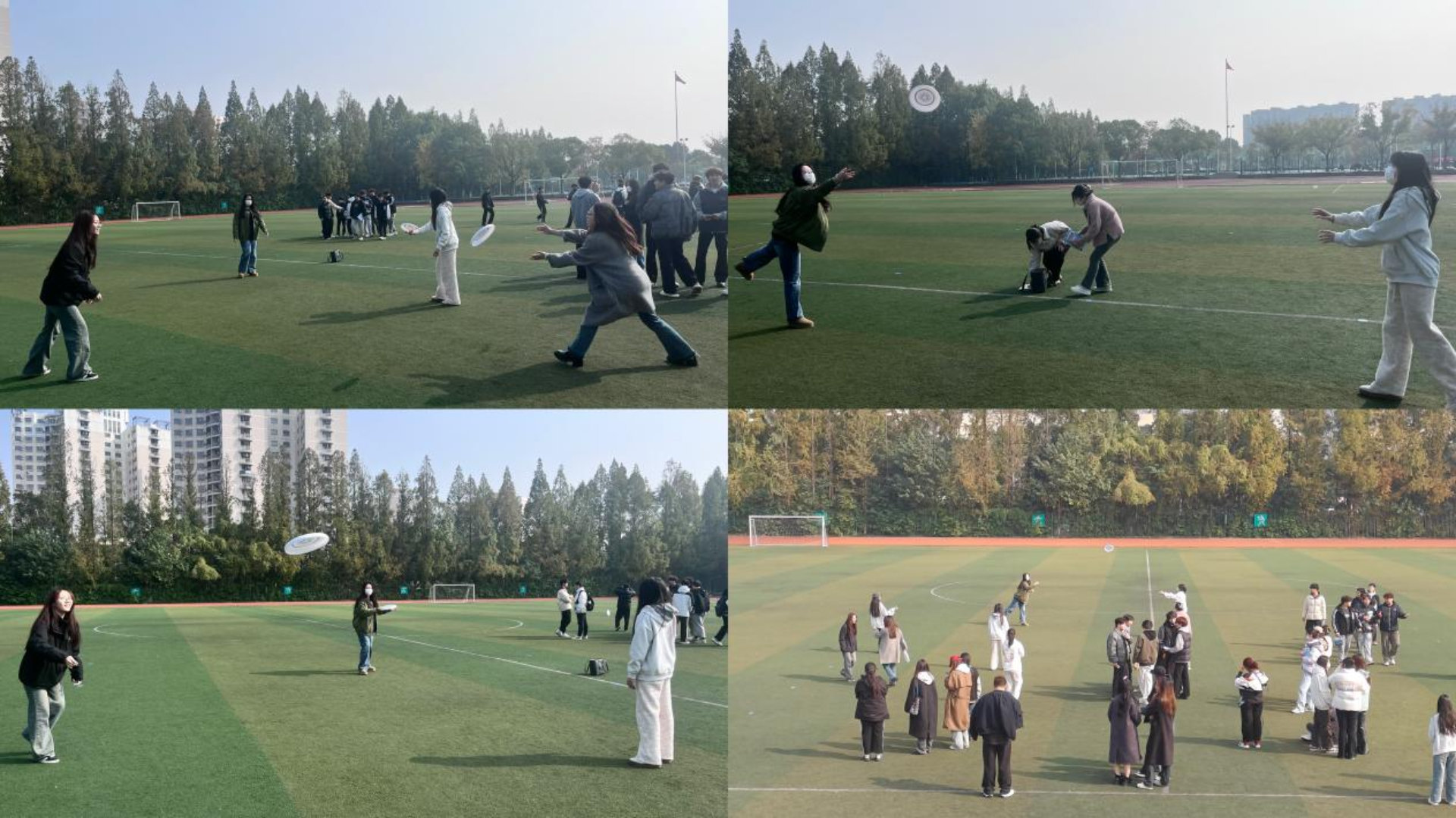 活动前,老师为同学们讲解了飞盘的基本知识、持盘方式并演示抛接的要领。接着同学们分组扔盘、接盘,培养飞盘的手感并通过重复练习不断提高团队合作的默契。同时,老师适时、耐心地指导和纠正,让大家的动作更加规范。