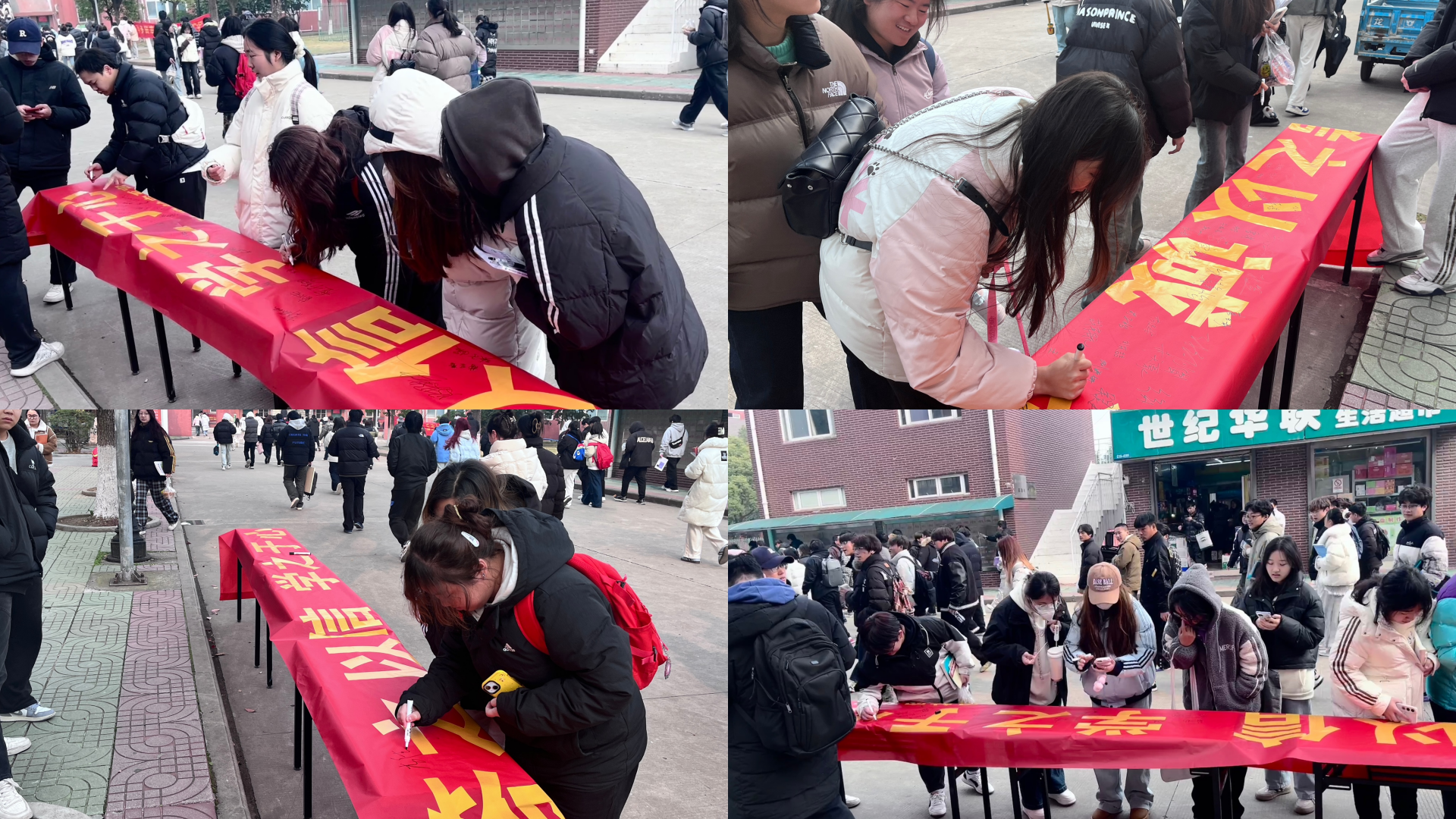 组织诚信考试签名活动,学生郑重签下名字,许下庄重承诺;还自发举办主题班会,分享复习经验,互助答疑,携手以真才实学迎考。