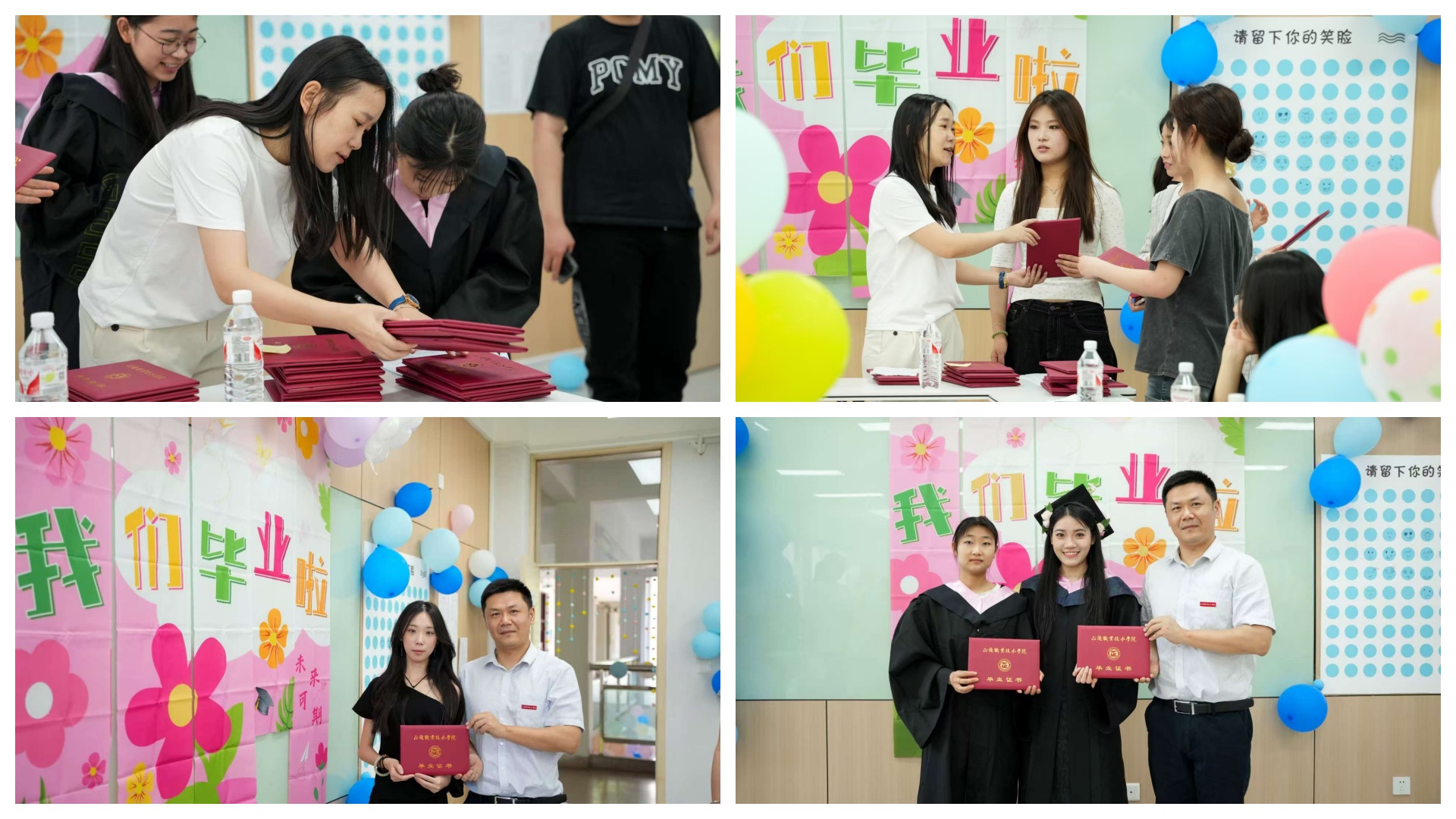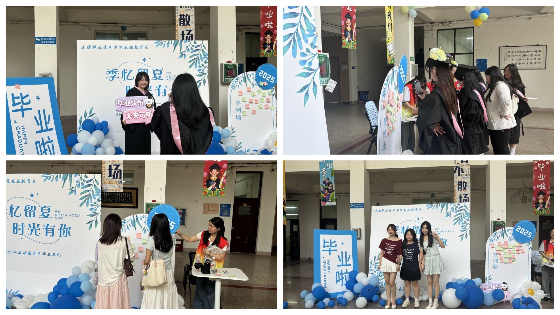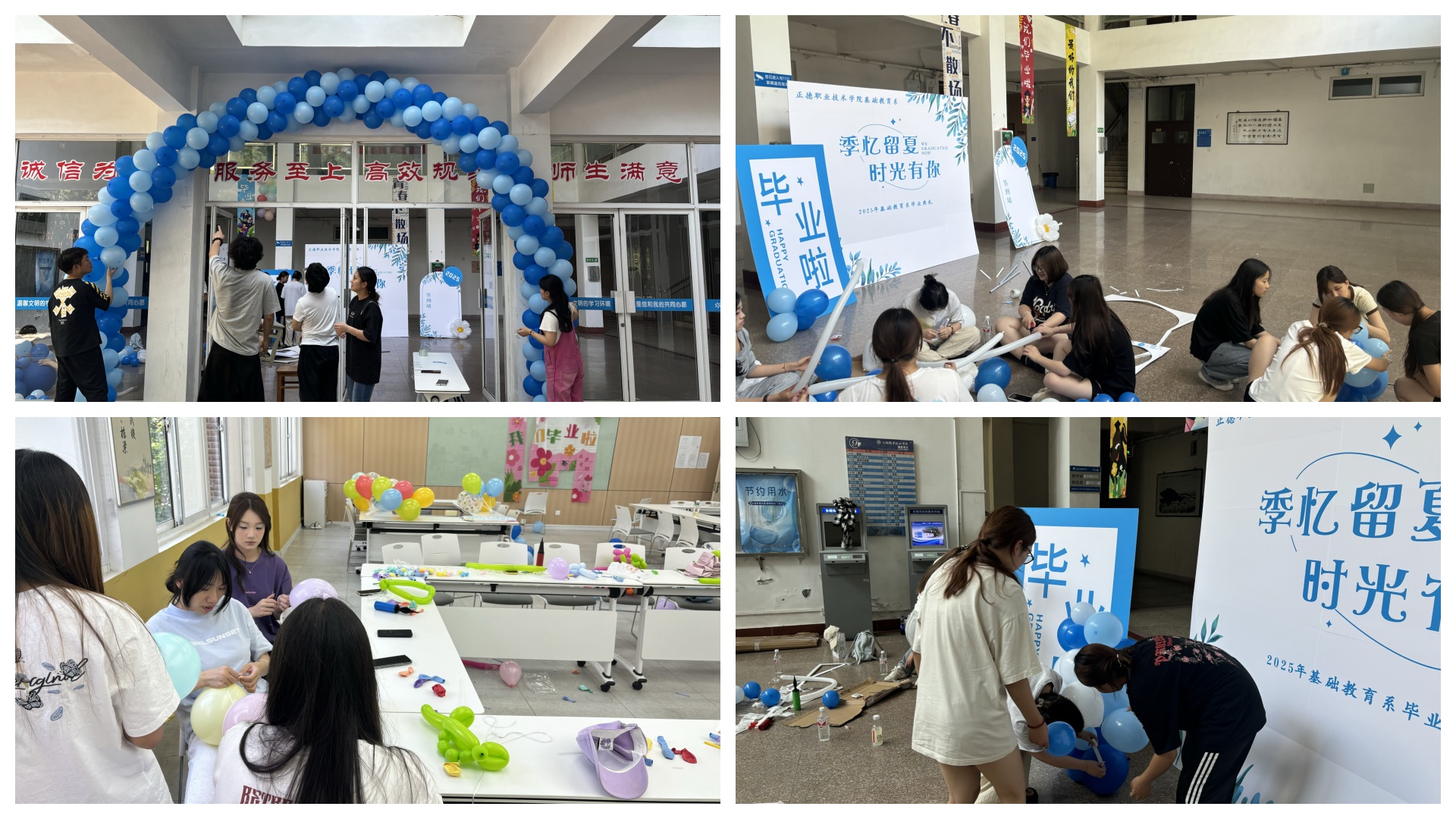 精心筹备,学风引领初展现。毕业欢送会的筹备工作是一场充满责任感与使命感的接力。从会场布置开始,每一个细节都彰显着对学风的尊崇。23级24级同学们早早来到场地,以严谨认真的态度进行着各项准备。他们悬挂的横幅上,写着鼓励学长学姐们在未来继续保持良好学习习惯、追求知识的话语;摆放的桌椅整齐有序,象征着秩序与规范,这正是学风建设中严谨治学态度的体现。在拍照区域的设计上,以校园中那些见证了同学们学习成长的标志性建筑为背景,提醒着大家不忘在校园里刻苦钻研的岁月。
