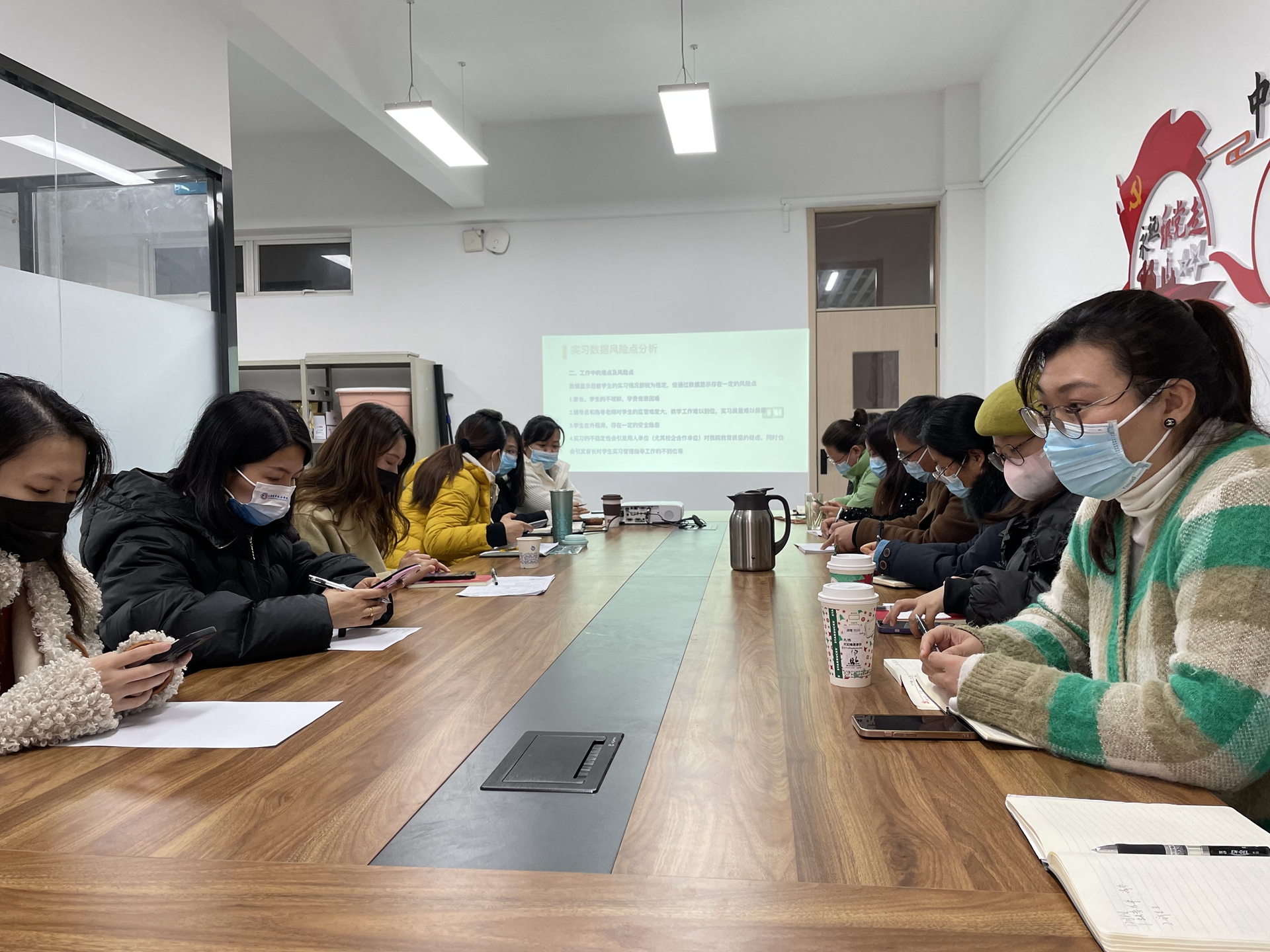 辅导员做好就业数据真实性的核查,做到就业“四不准”原则。党支部书记杨春娟老师针对就业工作数据统计中顶岗实习学生基本数据、实习指导老师、就业基地的对接等情况做汇报总结,深入分析当前就业中存在的难点:1.家长、学生对顶岗实习的不理解,学费催缴困难;2.辅导员和指导教师对学生的监管难度大;3.学生校外租房,存在一定的安全隐患。4.实习的不稳定性会引发用人单位尤其是校企合作单位对黄色直播 教育质量的疑虑。加强就业指导,坚持实事求是,加强就业数据统计,强化工作督导和核查抽查,确保真实准确。辅导员吴美仪、刘翠云、吴春凤就目前的就业率做汇报。并陈述当前未就业学生的困难及帮扶具体措施。