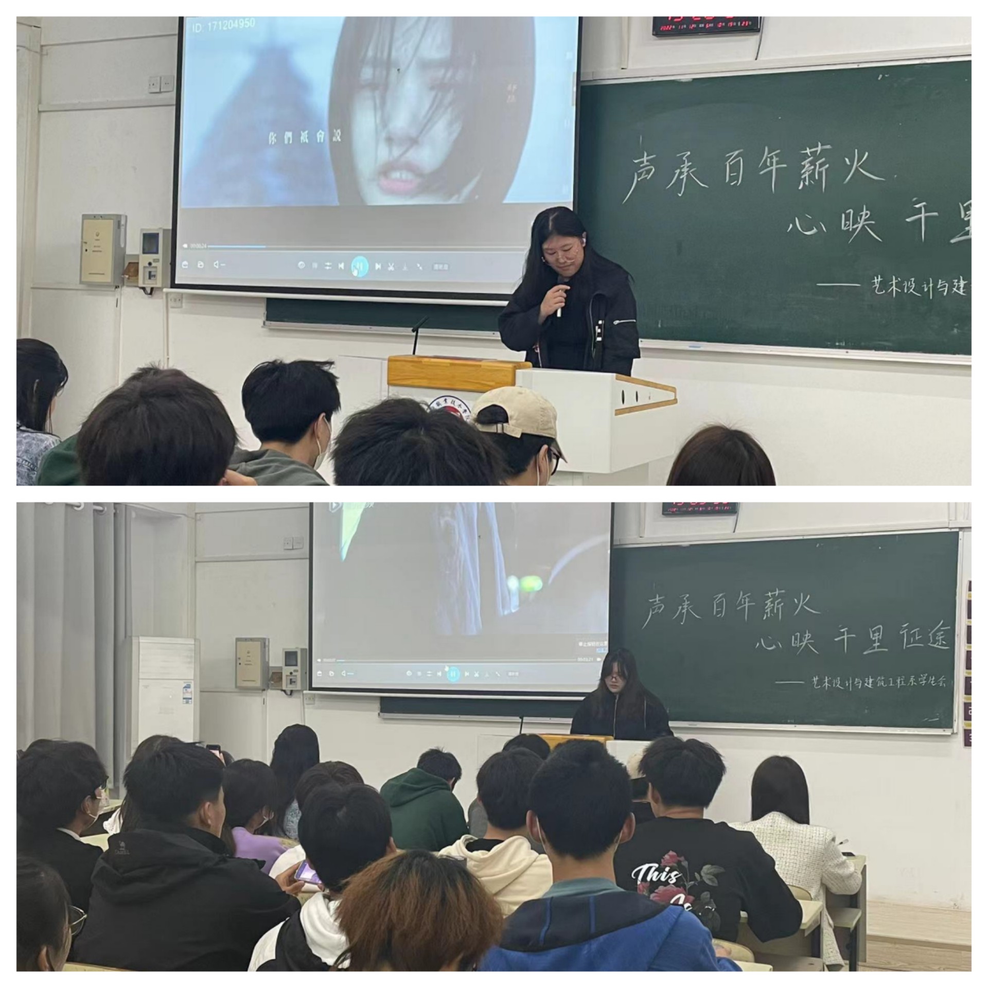 为了丰富同学们的课余生活,提高团队合作能力,黄色直播 艺建系学生会举办了“声承百年薪火,心映千里征途”为主题的红色经典配音大赛,比赛于2022年11月21日在2206教室举办。本次比赛特邀院新闻媒体中心主任吴宋俣同学做主评委,艺建系学生会秘书部部长周涵同学及其他各班学生代表现场投票打分。