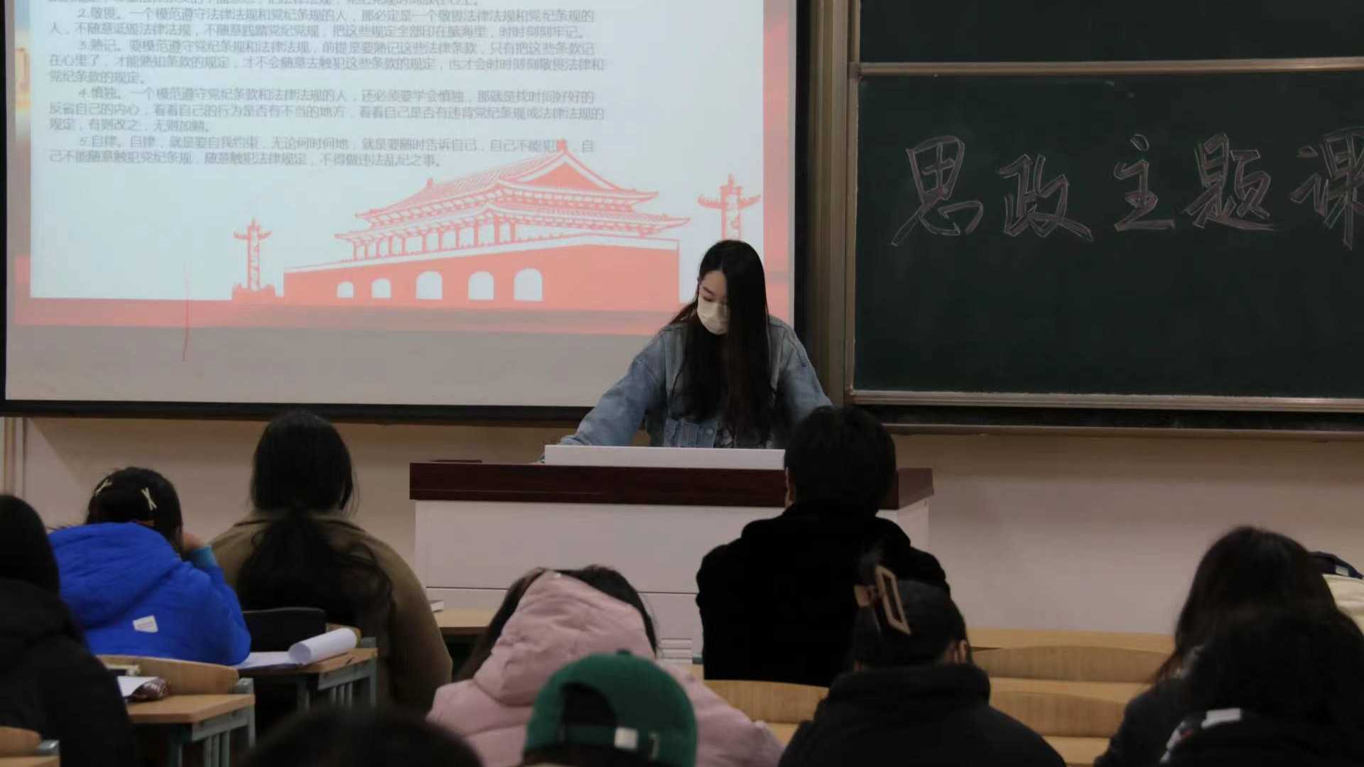 为引导我系学生深入认识和理解理想、信念的科学涵义,理解确立坚定理想信念对成长成才的重要意义,同时在引导学生将个人理想与社会理想结合为中国梦注入青春能量的过程中,随着宪法宣传日的到来,加强爱国主义教育、道德教育及法治教育,使其增强四个自信,自觉做到两个维护,树立明大德、守公德、严私德的自觉意识,以实际行动维护我国宪法地位,成为法治中国建设的中坚力量,由此于12月2日,艺术设计与建筑工程系2022级新闻采编与制作专业全体同学在2305教室开展了系列主题思政课。
