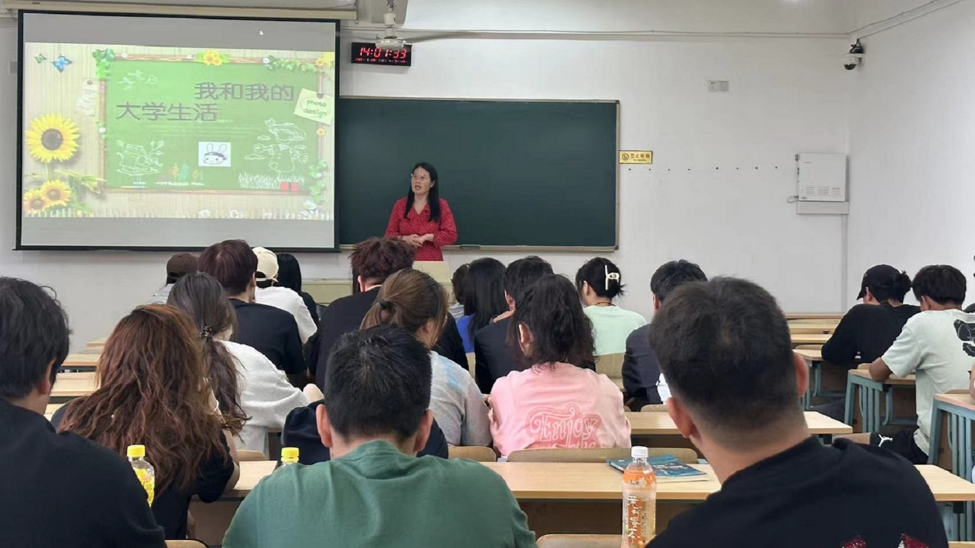 本次活动,班主任徐冬梅老师给大家从寝室文化、规律生活、读几本经典书籍、安全管理等方面给同学们讲讲大学生活应该怎么过得充实而有意义。首先谈到的是寝室文化,学生寝室是学生大学生活的缩影,让同学们把寝室当成第二个家,逐步养成良好的卫生习惯和形成积极向上的寝室文化。徐老师还鼓励大家走出网络,走进操场,走进图书馆,自我提升,认真读几本经典书籍。鼓励同学们要自信,勇于表现自己,多参加系、学校活动,多参加社团活动,锻炼自己的社交能力。