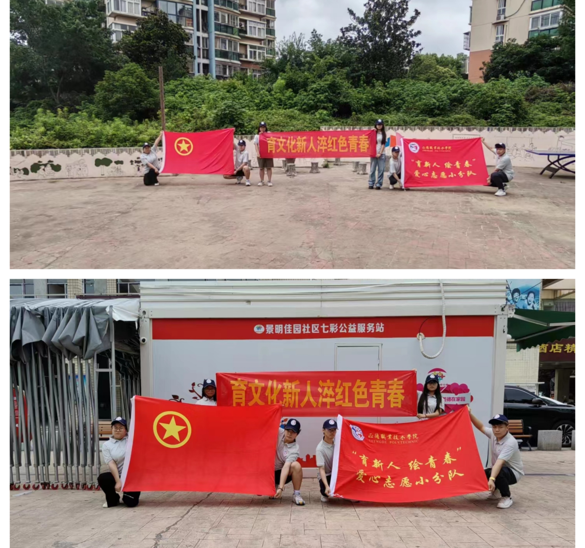 为了进一步学习宣传贯彻习近平新时代中国特色社会主义思想,全面贯彻落实党的二十大精神,深刻领悟习近平总书记同团中央新一届领导班子成员集体谈话的指示精神,引导和帮助广大青年学生在与现实相结合的“大思政课”中“受教育、长才干、做贡献”,引领学生立志做有理想、敢担当、能吃苦、肯奋斗的新时代好青年,激发广大青年在中国式现代化建设中挺膺担当,在校团委的指导支持下,系部团委带领下,艺术设计与建筑工程系围绕“党建+”建设,在景明佳园社区开展主题社会实践活动。