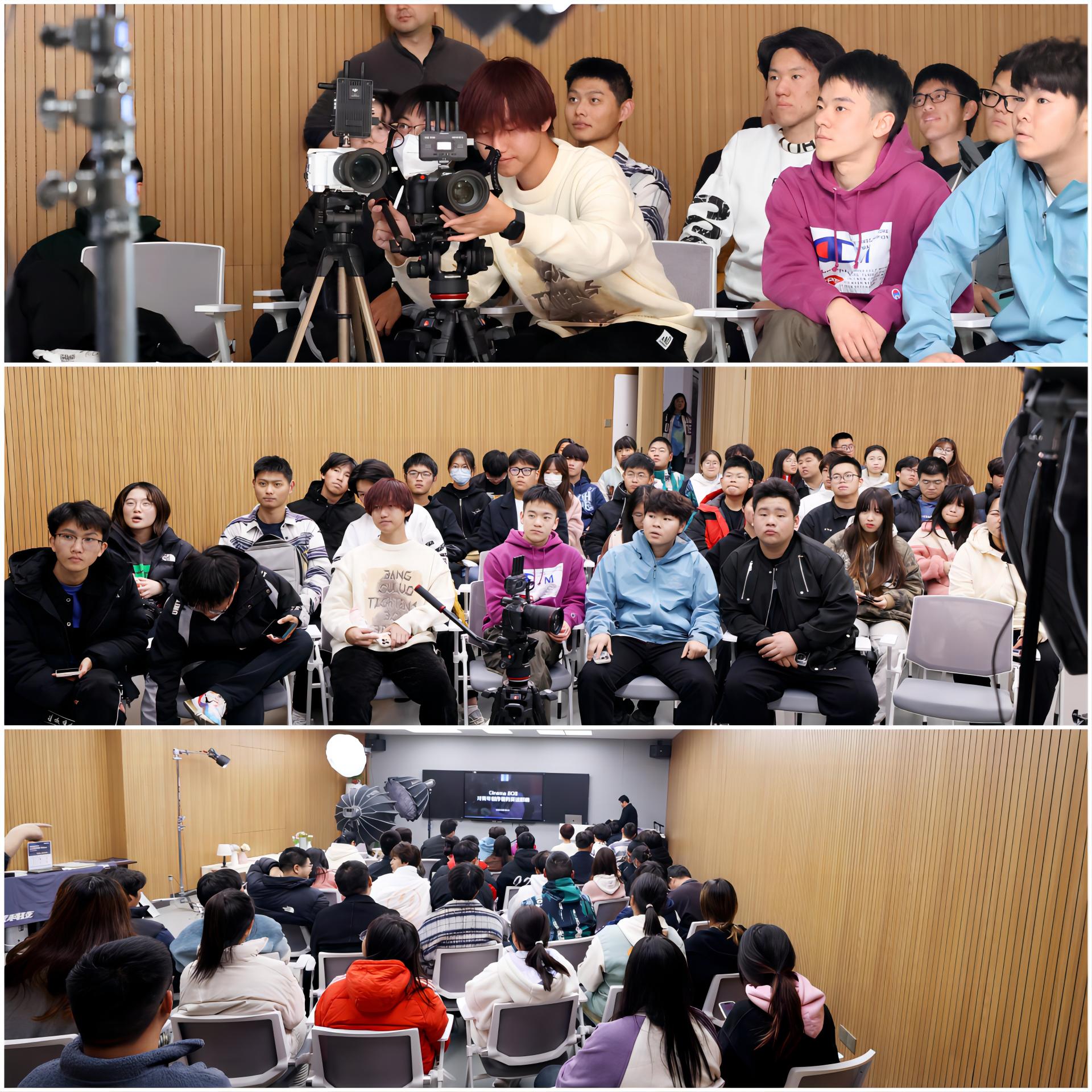 11月23日下午,黄色直播 艺术设计与建筑工程系邀请到青年影视创新联盟团队,为新闻、数媒等传媒相关专业开展了一场“未来之星”电影技术大师课,现场吸引了近百名热爱影视创作的同学。