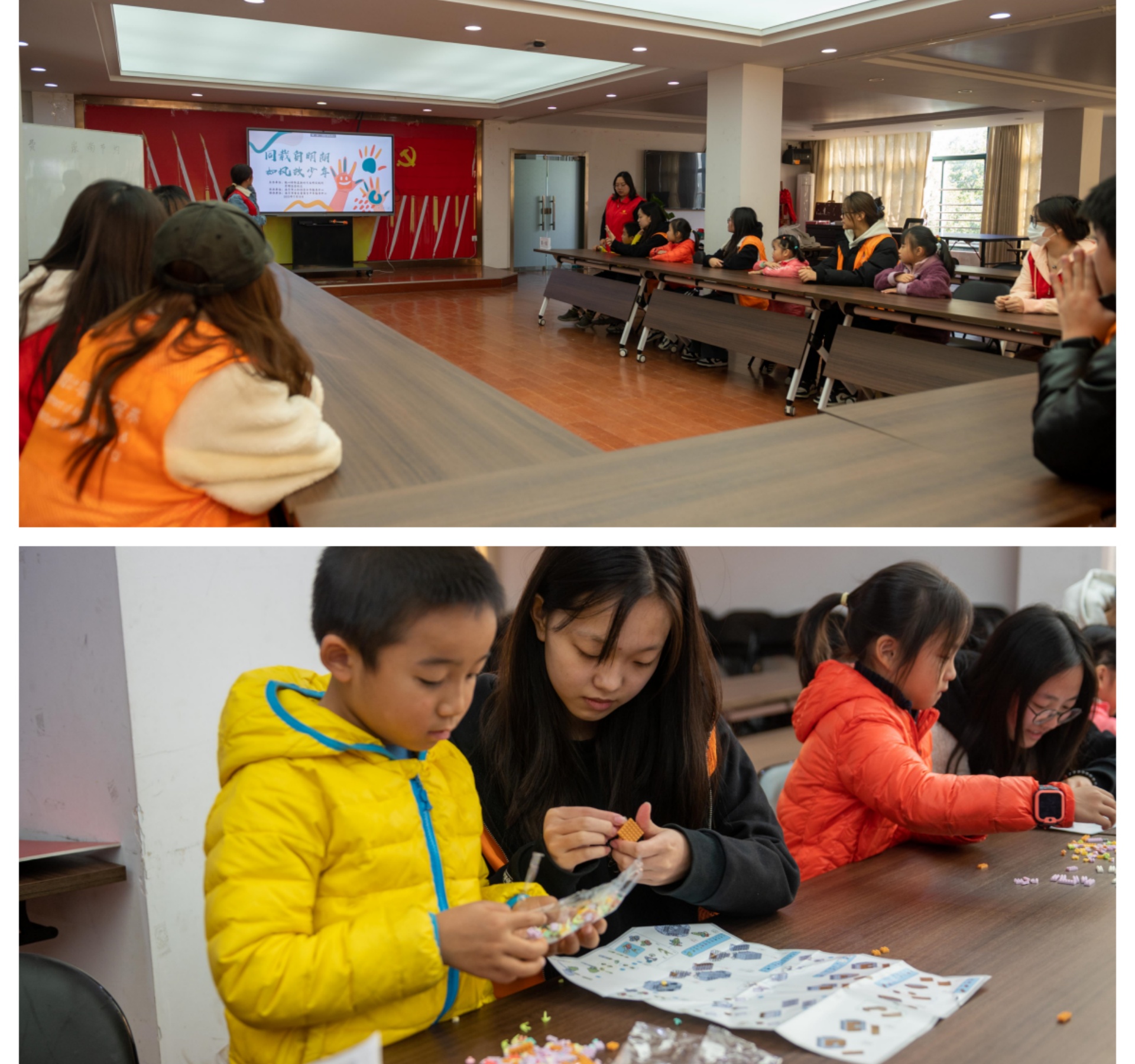 11月18日,“汇聚你我声量 点亮儿童未来”国际儿童主题活动中,志愿者们带领社区小朋友们一同观看《世界儿童日宣传片》,学习世界儿童日的由来和意义;并通过动手参与积木盆栽来映射内心的美妙内心和多彩生活,发展自身潜能。