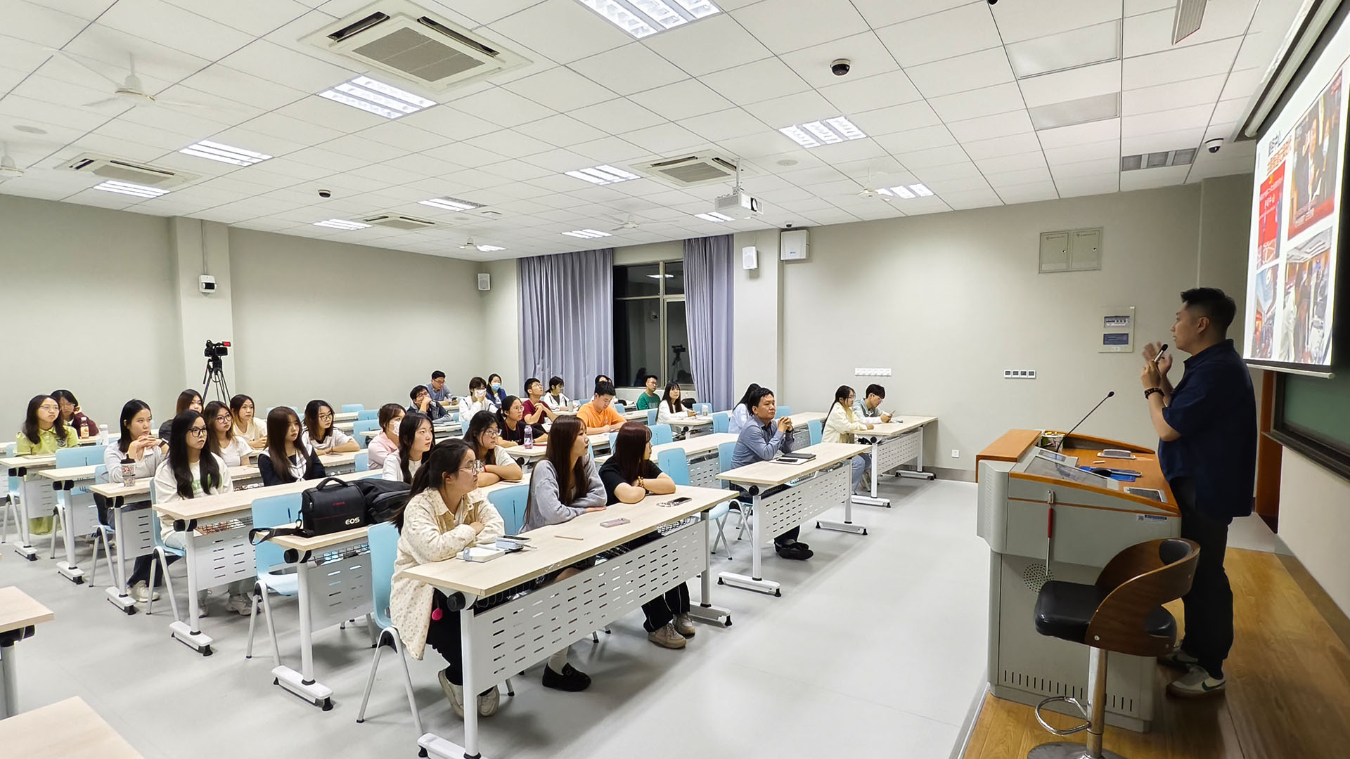 此次活动,同学们踏入这所著名学府,与本科生们共同参与其中,这一难得的机会不仅让同学们领略到本科院校独特的校园环境,感受浓厚的学习氛围,更是一次提升自身专业素养的宝贵经历。通过讲座,使他们能够更深入地了解新闻传媒行业的最新动态和趋势,以及新闻采编与制作方面的前沿知识和技术。