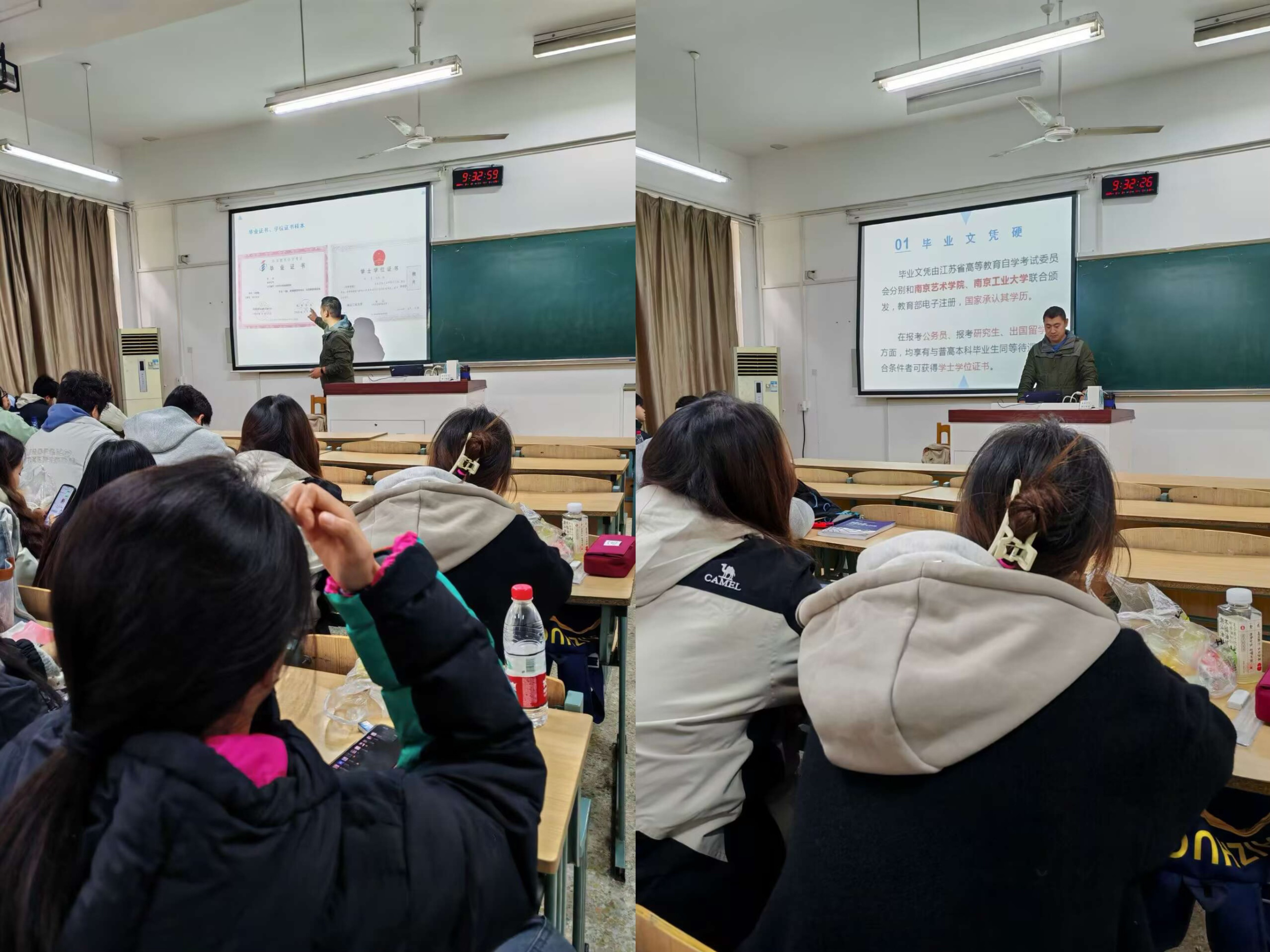 近日,艺术设计与建筑工程系举办了一场别开生面的升学之路宣讲会,旨在帮助2023级全体学生深入了解专转本、专接本的升学途径,以及我校独特的升学优势,并为他们未来的学业规划指明方向。宣讲会由经验丰富的周倩、吴青和王家甲老师分班一一主讲,内容涵盖了转本、接本、升本的区别,我校转本辅导班及接本项目的优势,以及英语薄弱学生选择接本的独特优势。宣讲会最后,周卫主任发表了重要讲话,提出了三点殷切希望。