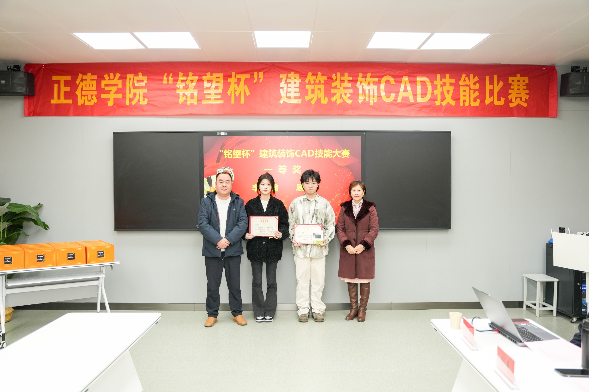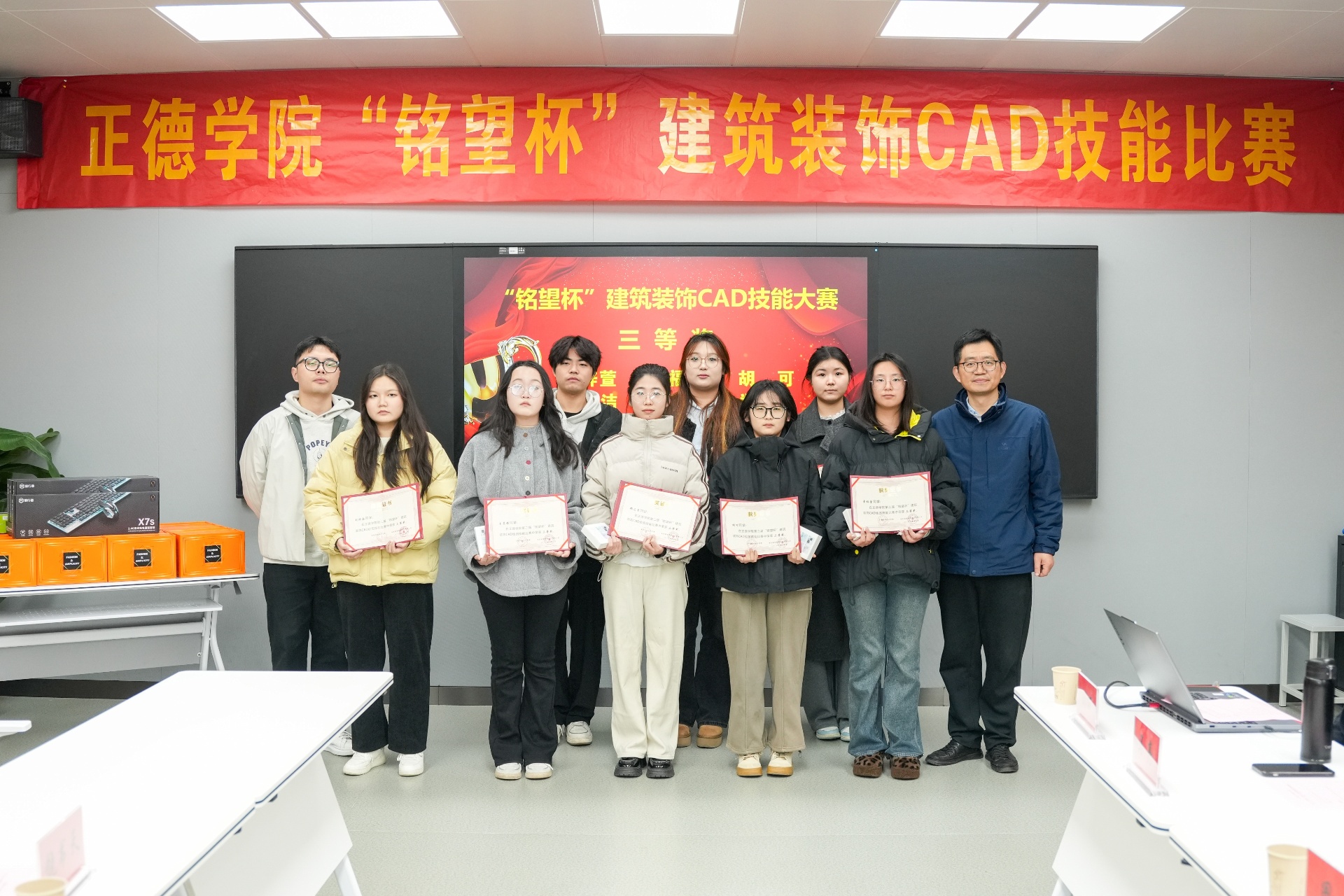 本次大赛面向2023级建筑装饰工程技术、建筑室内设计、环境艺术设计及工程造价专业的学生,旨在通过个人赛的形式,全面考察和提升学生的CAD绘图及效果图制作能力。经过激烈的角逐,共有30名学生成功入围总决赛,并评选出一等奖2名、二等奖5名、三等奖8名以及若干优胜奖。南京铭望装饰设计有限公司为获奖学生提供了丰厚的奖品,以表彰他们在比赛中的卓越表现。