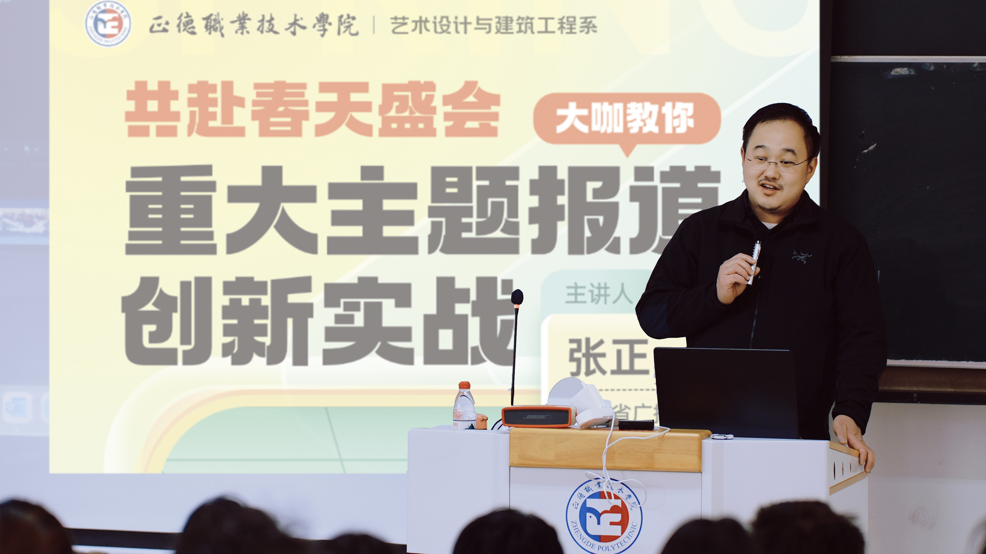 主任记者张正,开展了《重大主题报道的创新实战》主题讲座。全系新闻与采编制作专业学生、新媒体部学生、班主任与行业专家共聚一堂,共探全媒体时代重大主题报告的创新密码。