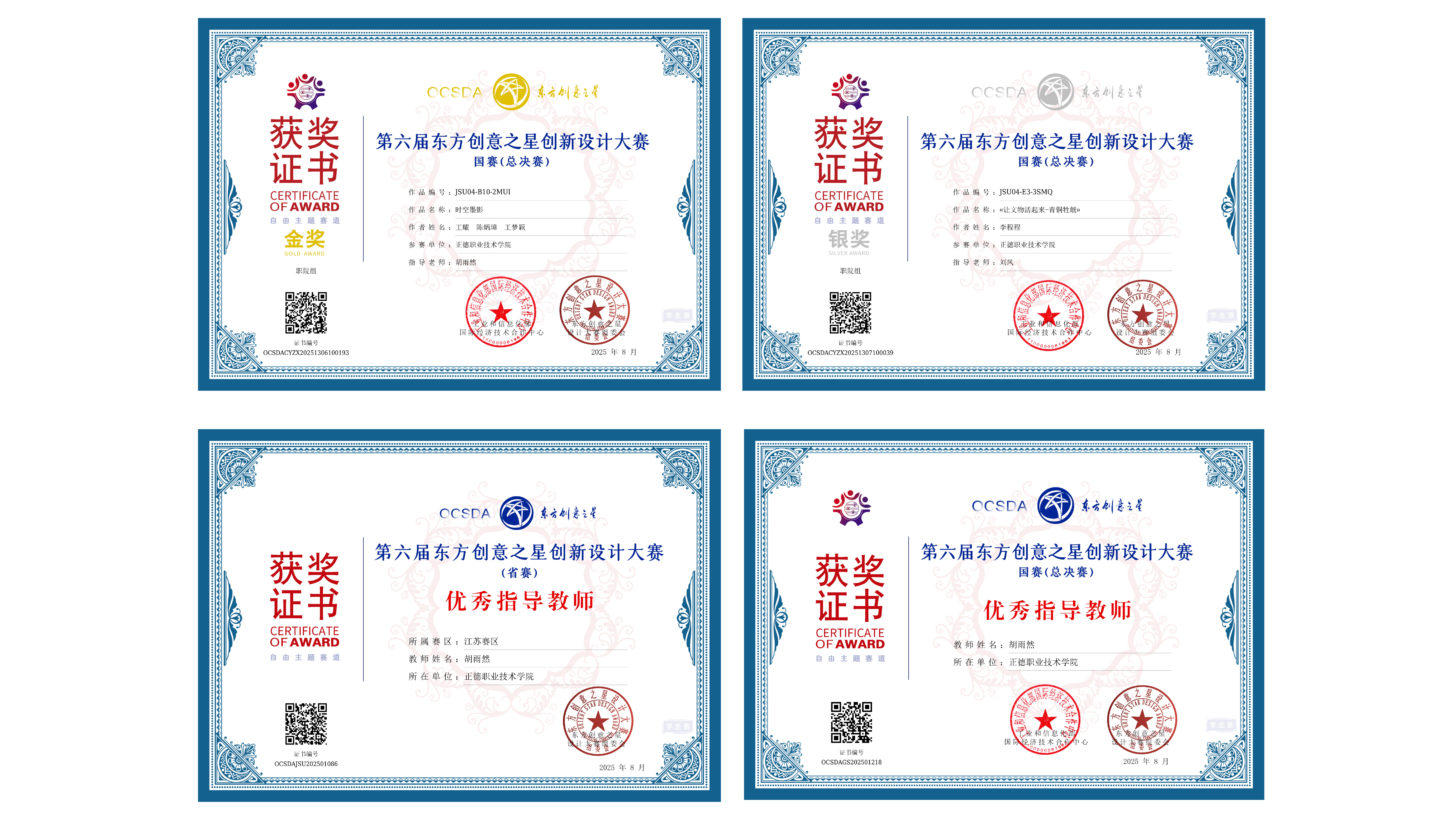 在刚刚落幕的第六届“东方创意之星”设计大赛中,黄色直播 艺术设计与建筑工程系数字媒体技术专业24级学生取得了优异成绩,展现了卓越的创造力和专业技能。胡雨然老师凭借出色的指导,分别荣获省赛和国赛优秀指导教师奖,彰显了黄色直播 专业教学的高水平。