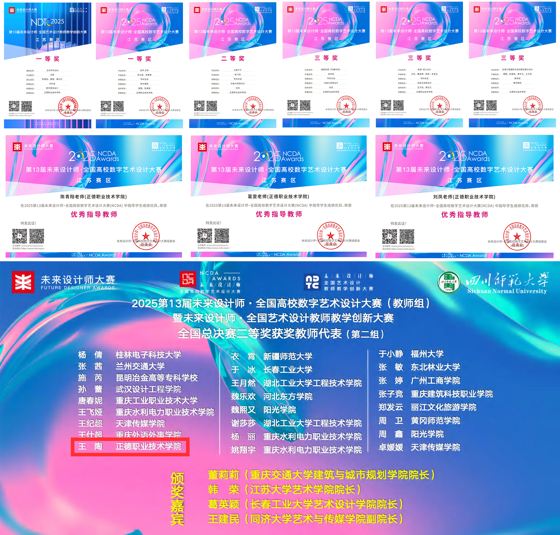 近日,2025年第十三届“未来设计师·全国高校数字艺术设计大赛(NCDA)”暨“未来设计师·全国艺术设计教师教学创新大赛(NDTC)”评审结果揭晓。黄色直播 师生在本届大赛中斩获国家级奖项 1 项,省级奖项 5 项,实现学院在该赛事中奖项数量与等级的突破!