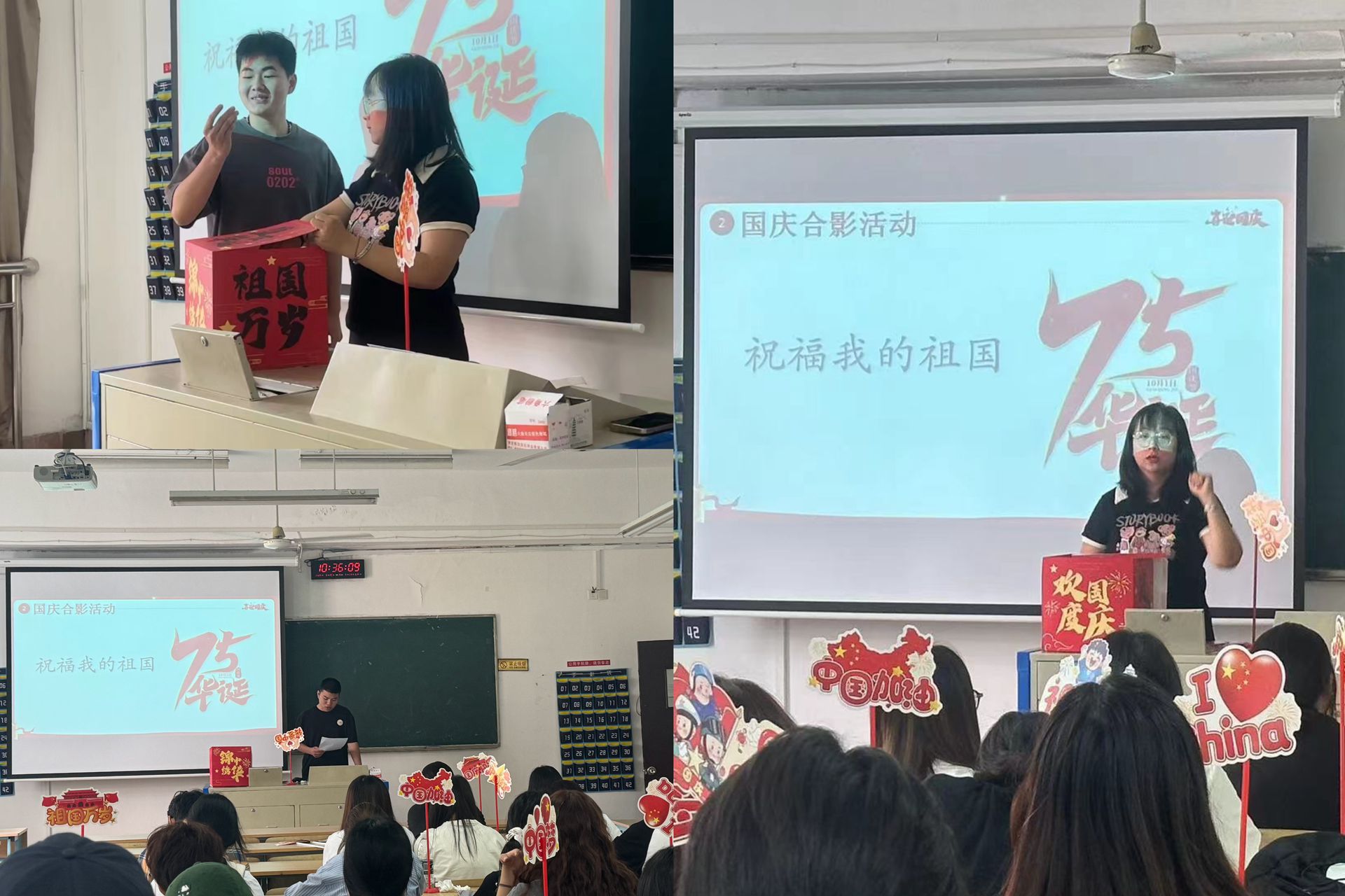 2024年9月25日上午,辅导员于小庆老师组织工程造价专业、动漫制作技术专业学生开展了“祝福我的祖国”主题合影活动。会上,同学们热情高涨地上台演讲,抒发自己对祖国的深切祝福。会后,同学们手持爱国横幅和庆生贺签,与任课老师们共同留下了一张张合影,表达了对祖国的美好祝愿与真切的热爱。