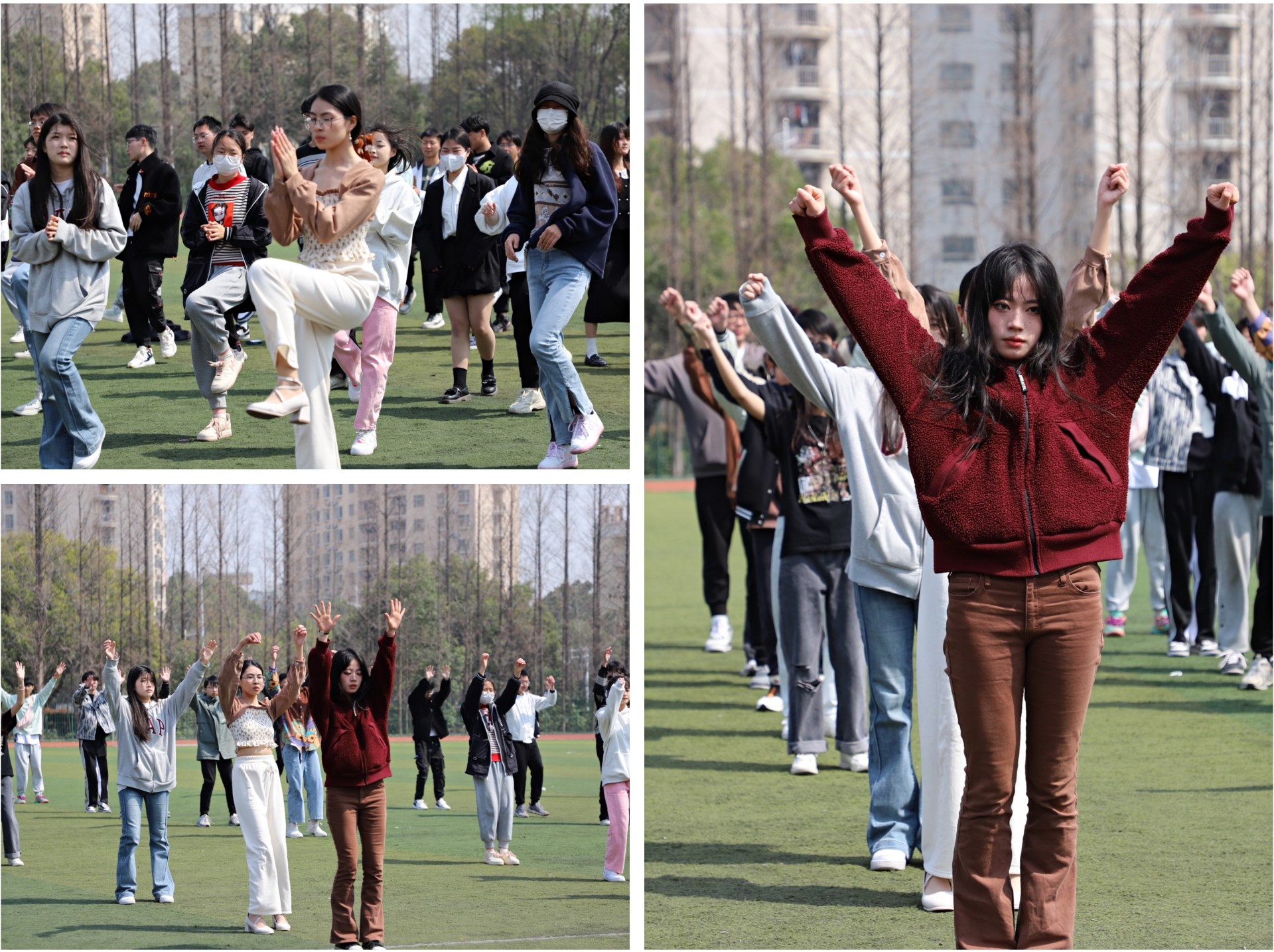 为贯彻落实团中央关于开展“走下网络、走出宿舍、走向操场”大学生主题群众性课外体育锻炼活动试点工作的方案和学校相关指示精神,结合我校开展“三走”主题团日活动的具体安排,艺术设计与建筑工程系22级大一学生在辅导员廖晶晶老师的带领下,在操场开展了“阳光校园,三走有我”的啦啦操排演活动。