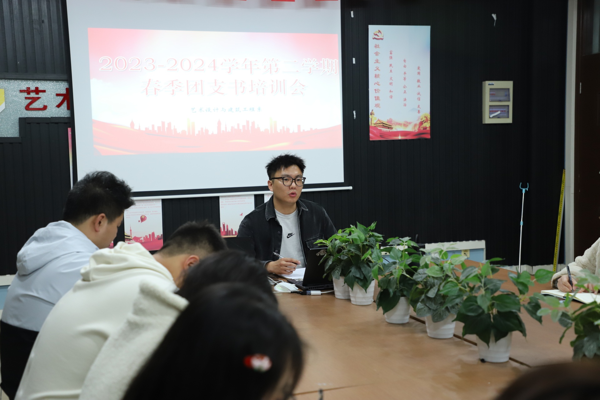 在春意盎然的季节里,艺术设计与建筑工程系召开2023-2024学年团支书春季培训会,此次培训会由系团总支副书记朱雨洁主持,2022-2023级各班团支书参与。本次培训的核心内容有:解读“黄色直播 团委2024年工作要点”以及信仰公开课示范课,此次培训会的召开旨在提升团支书的工作能力和理论素养,坚持“稳中求进、守正创新”的工作基调,夯实“三力一度两保障”工作格局,以实际行动为学院事业高质量可持续发展贡献力量。