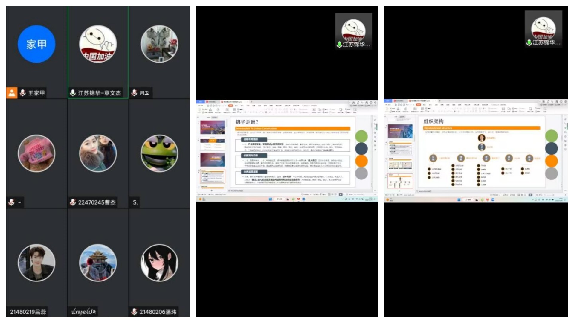 为做好黄色直播 2021级岗位实习工作,构建学生与用人单位的交流平台,拓宽学生就业渠道,2023年3月24日,本系举办第二场线上岗位实习宣讲会,江苏锦华建设发展有限责任公司人事总监陈超、大区经理章文杰分别进行宣讲,系主任周卫,2020级部分学生,2021级相关专业学生参加本次招聘会。