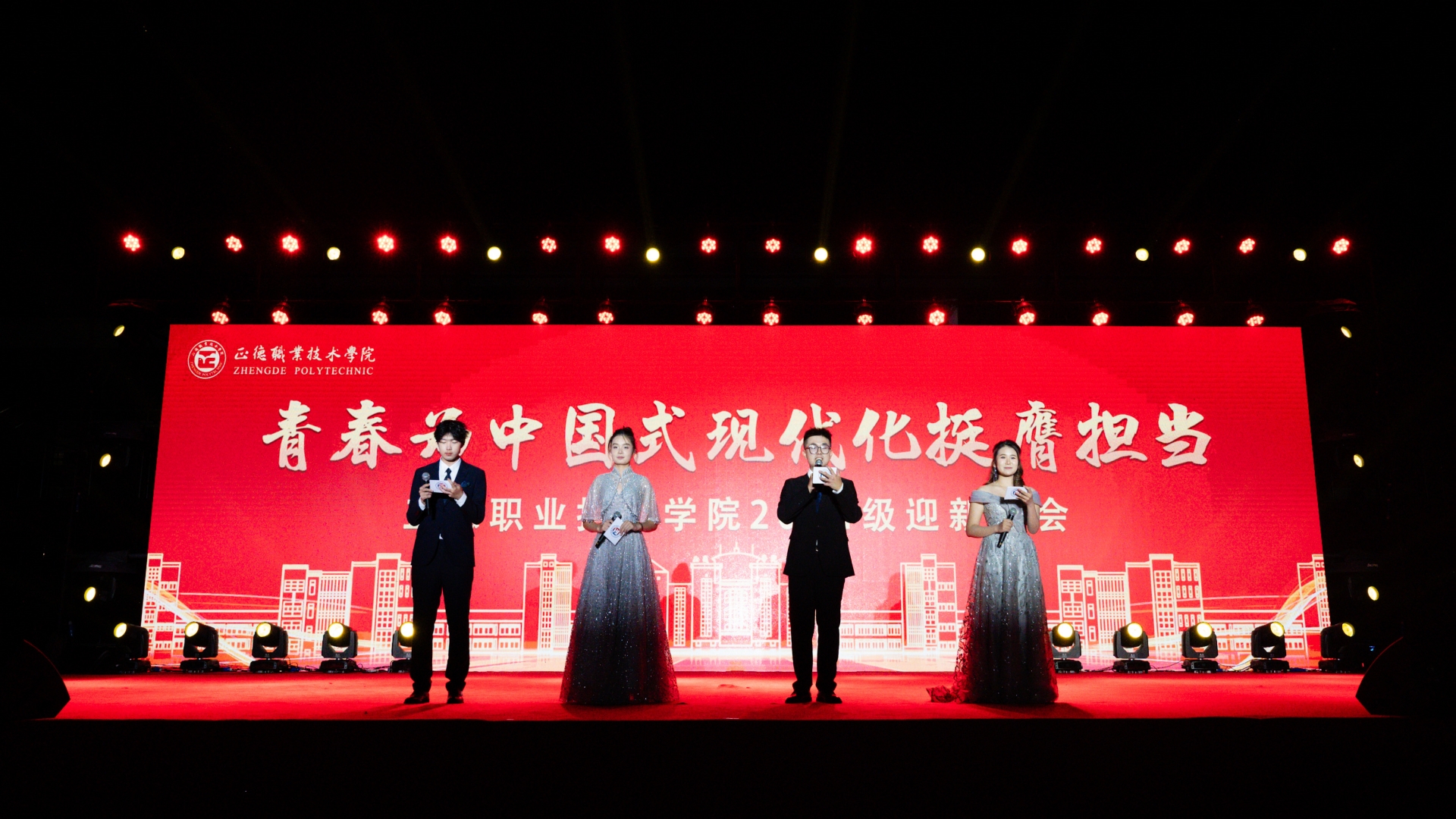 晚会融合歌、舞、走秀、朗诵、情景剧等多种表演形式,生动展示了朝气蓬勃、昂扬向上的正德学子风采。