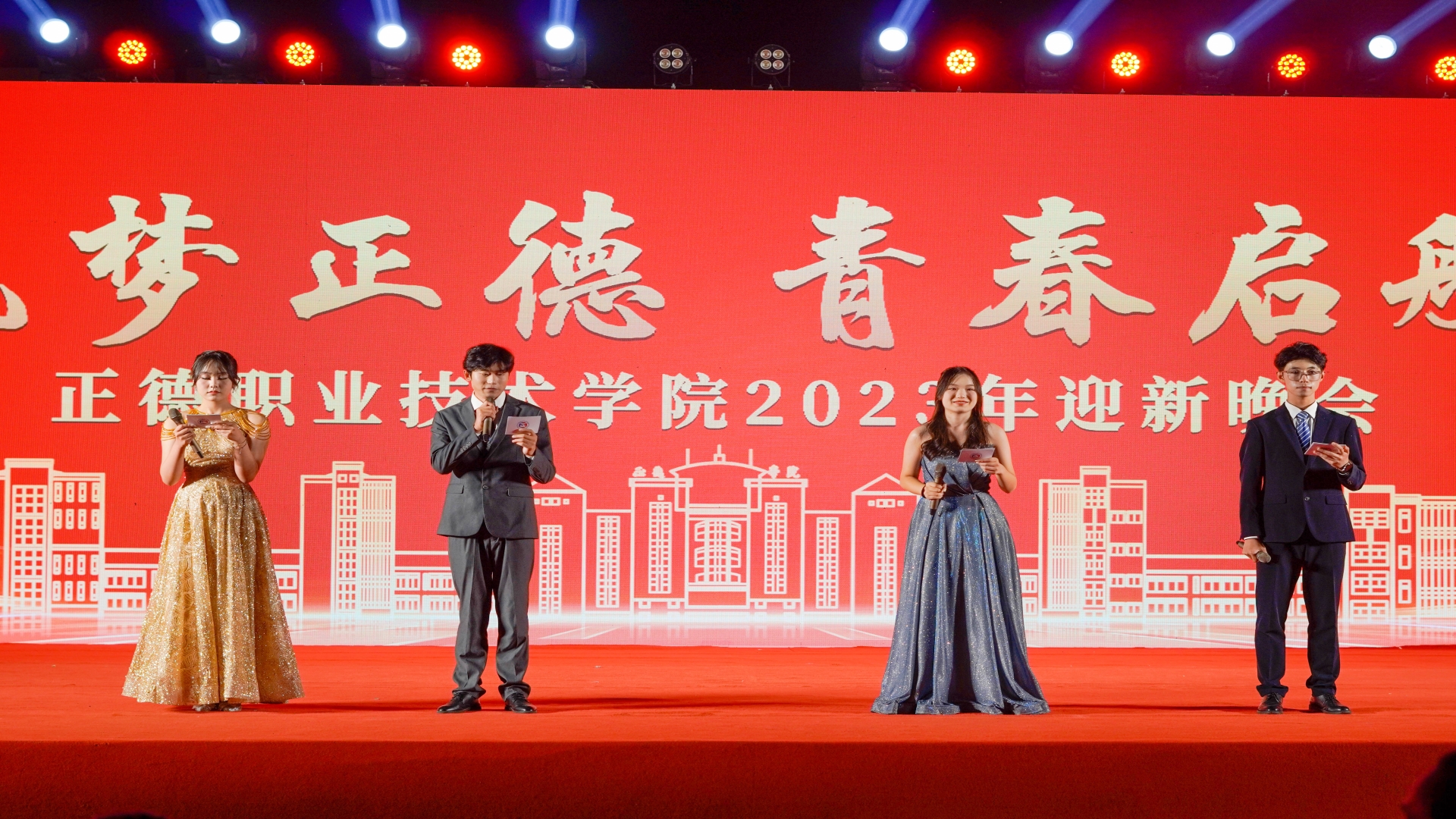 晚会由寻梦启航——望起点、乘梦前行——向征程 、逐梦绽放 ——致远方三个篇章组成,以"正德红"作为主基调,融合歌、舞、器乐、戏曲、朗诵、情景剧等多种表演形式,生动展示了朝气蓬勃、昂扬向上的正德学子风采。