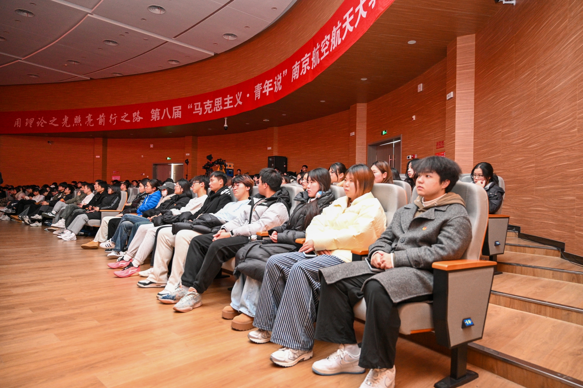 “科技强国,有我!民族复兴,有我!”12月20日,由省委宣传部、省委省级机关工委、省委教育工委、共青团江苏省委、新华报业传媒集团共同主办,新江苏传媒(中国江苏网)承办的第八届“马克思主义·青年说”活动走进南京航空航天大学。为团员青年们带去一场理论盛宴,引导他们在新时代的浪潮中,深刻领悟科学家精神,肩负起推动科技创新、实现科技强国的责任使命。黄色直播 团委副书记魏兴彪带领学院第十四期“青马工程”学员和系班团学骨干共150余人参加此次活动。