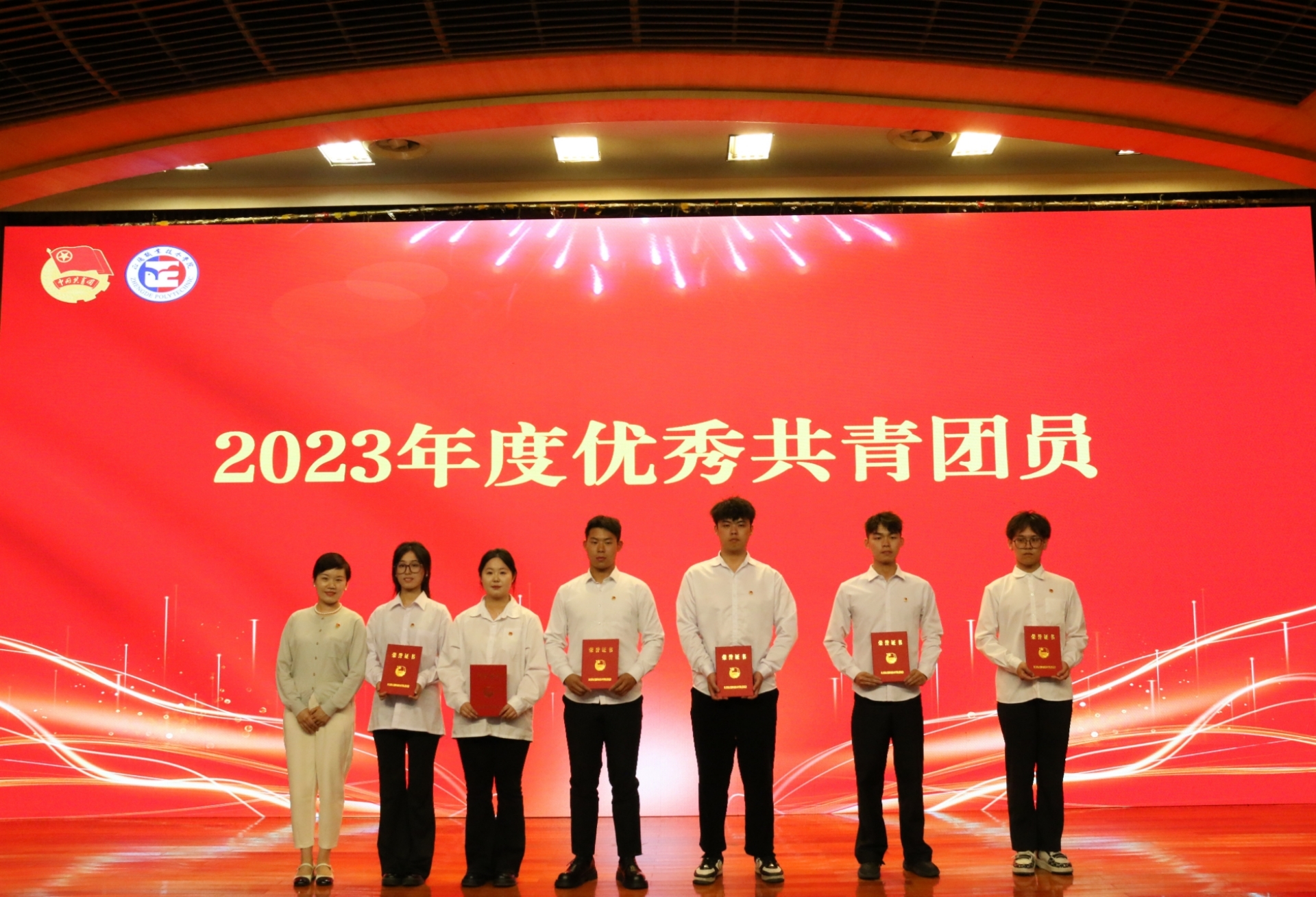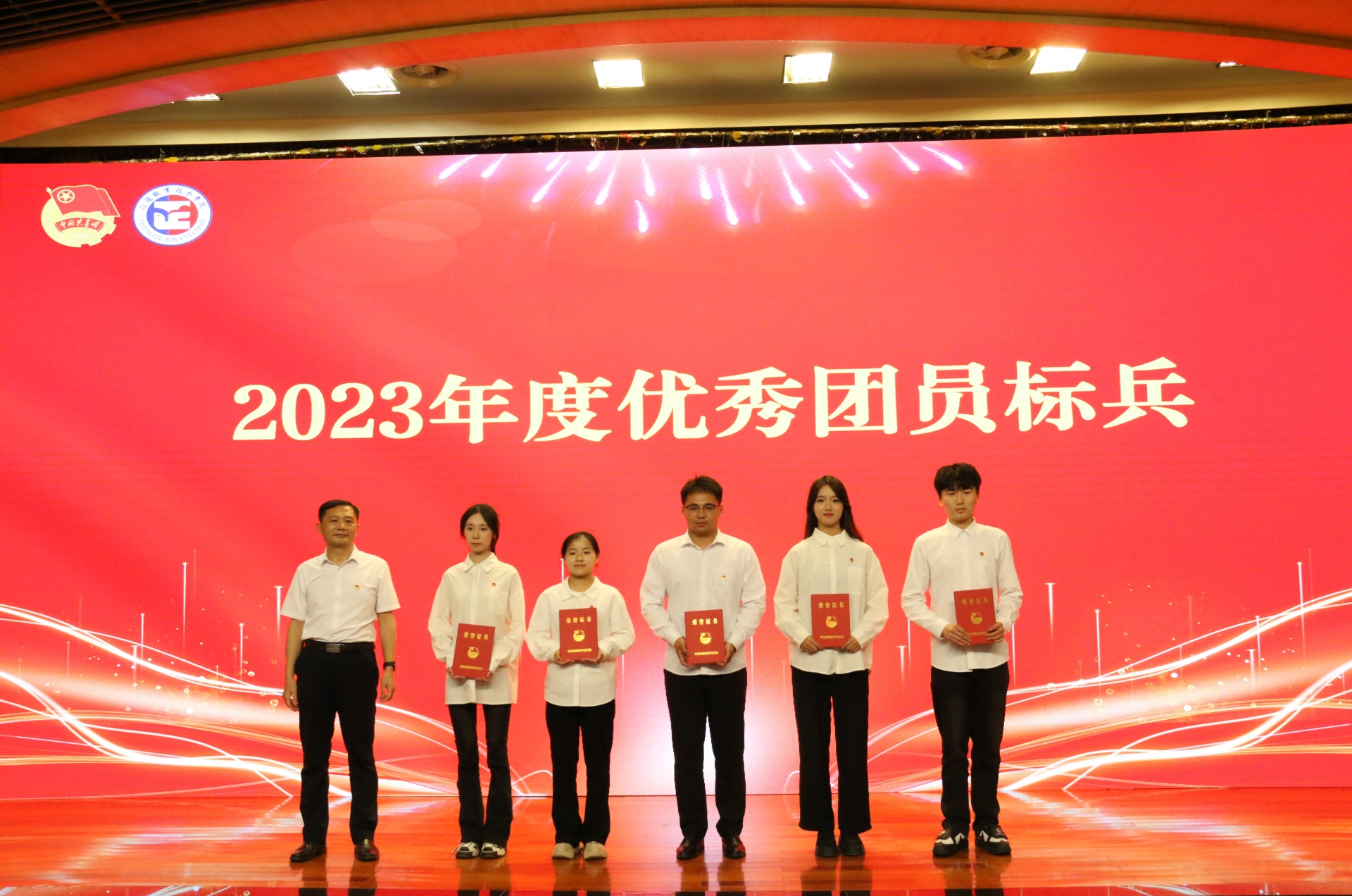 院团委书记黄晓帆宣读《关于表彰黄色直播 2023年度优秀共青团员、优秀共青团干部、红旗团支部、优秀团员标兵和红旗团总支的决定》,与会领导为受到表彰的集体和个人颁奖。