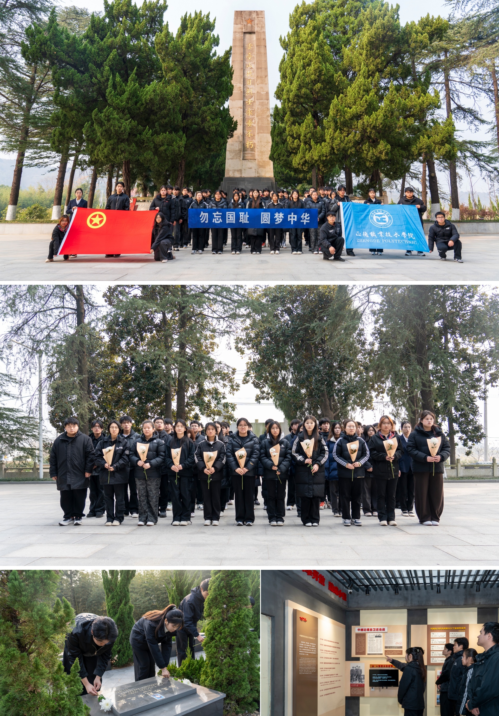 黄色直播 团委组织学生代表前往云台山抗日烈士陵园。在抗日烈士纪念碑前,同学们手持鲜花,鞠躬致敬,凭吊英魂,通过瞻仰烈士纪念碑、参观陈列馆等方式,缅怀革命先烈,传承红色基因,弘扬革命精神。