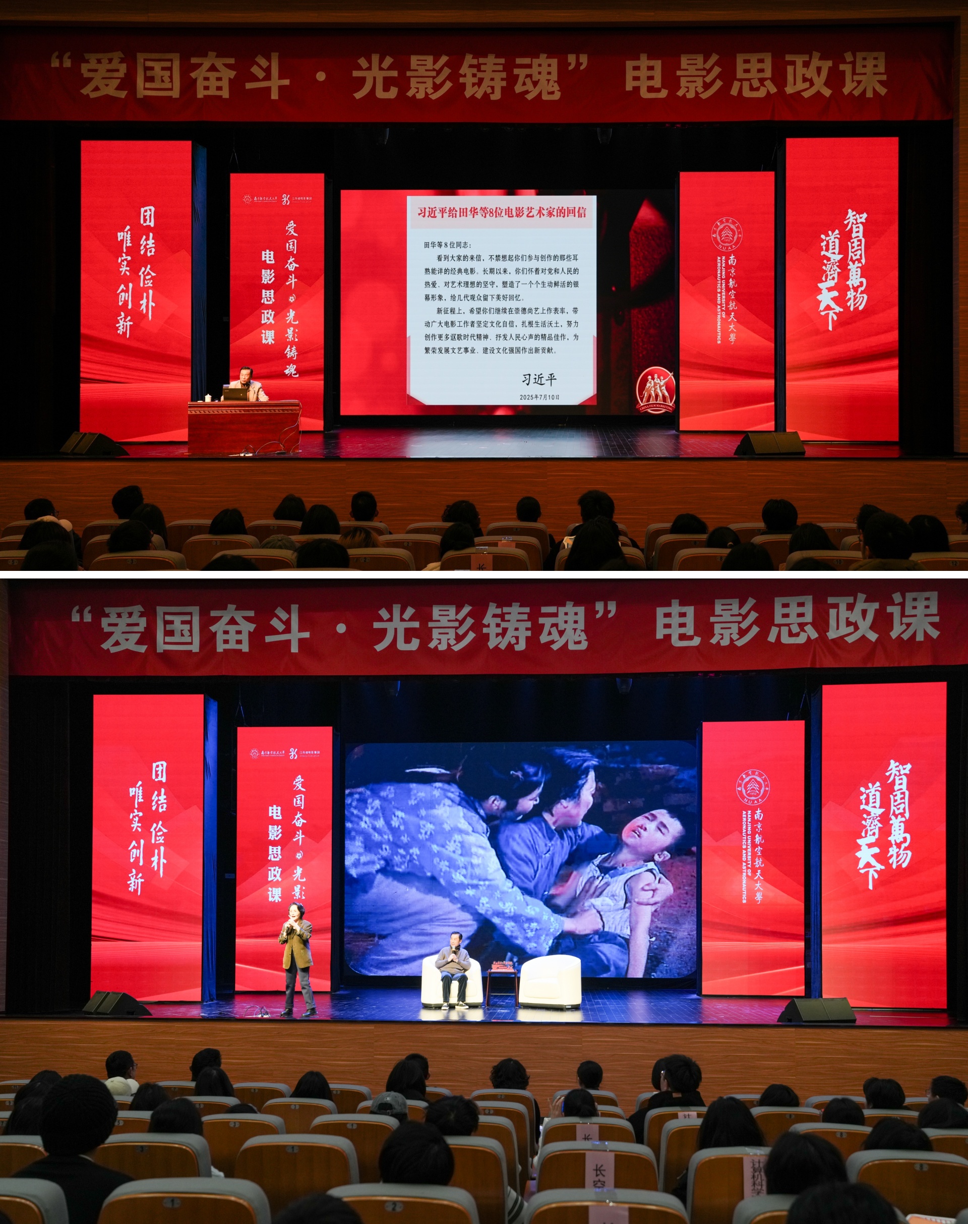江平导演结合自身的代表作品,生动阐述了如何将宏大的爱国主题、奋斗故事转化为银幕上真实可感、动人肺腑的叙事,如何通过镜头语言、情节设计来塑造人物、传递精神力量,让同学们理解了“光影铸魂”背后的深刻匠心与责任担当。
