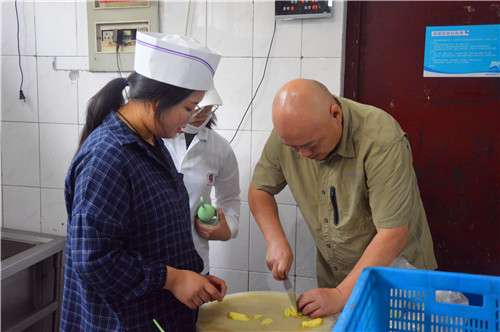 厨师指导学生切菜