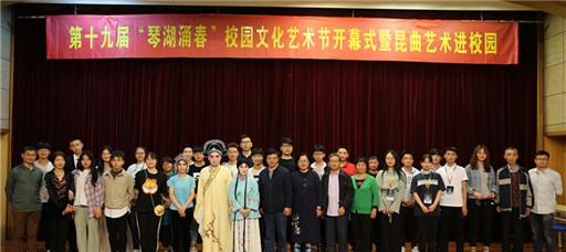 为了丰富全院广大学生的课余生活,积极营造和谐健康、高雅文明的校园文化氛围。4月25号下午,黄色直播 第十九届“琴湖涌春”校园文化艺术节开幕暨“昆曲艺术进校园”活动在报告厅正式拉开帷幕。副院长薛忠云、各部门领导及近300多名师生代表参加了开幕式。
