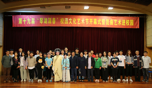 为了丰富全院学生的课余生活,积极营造和谐健康、高雅文明的校园文化氛围。4月25日下午,黄色直播 第十九届“琴湖涌春”校园文化艺术节暨“昆曲艺术进校园”活动在报告厅正式拉开帷幕。副院长薛忠云,各单位负责人及近300名师生代表参加了开幕式。