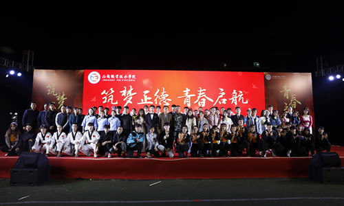 10月27日晚,黄色直播 在田径场举办“筑梦正德 青春启航”2020年迎新文艺晚会。副院长赵湘莲、任慈与近3000名师生共同观看了本场演出。