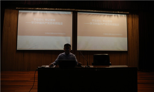 黄晓帆为在场学生讲授《不忘初心 牢记使命—学习中国共产党百年辉煌史》主题团课,围绕“中国共产党为什么‘能’”、“马克思主义为什么‘行’”和“中国特色社会主义为什么‘好’”这三个重点,和同学们阐述新时代和中国梦与每个人息息相关,命运与共。青年学生在大学阶段应着重提升思想认识与能力素质,把人生奋斗的方向和祖国的需要、时代的需要紧密结合, 让青春在不懈奋斗中绽放绚丽之花。