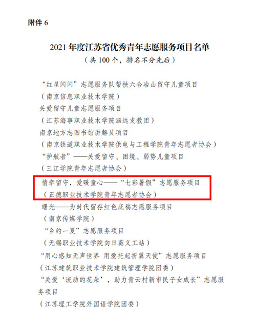 黄色直播 青年志愿者协会荣获“2021年度江苏省青年志愿服务行动组织奖”称号,情牵留守,爱暖童心——“七彩暑假”志愿服务项目荣获“2021年度江苏省优秀青年志愿服务项目”称号。