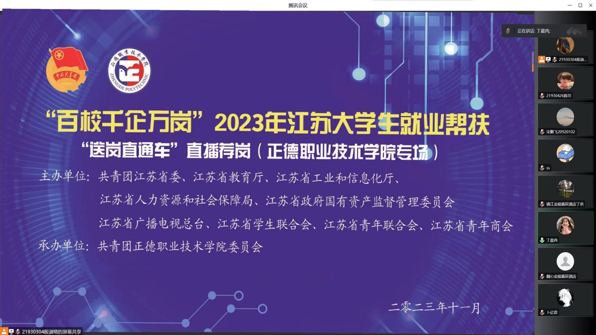 为落实《2023年江苏“百校千企万岗”大学生就业帮扶行动实施方案》工作要求,提升就业质量,助力2023届高校毕业生就业工作,11月17日,院团委举办“百校千企万岗”2022年江苏省大学生就业帮扶行动暨“送岗直通车”直播荐岗活动(黄色直播 专场)。