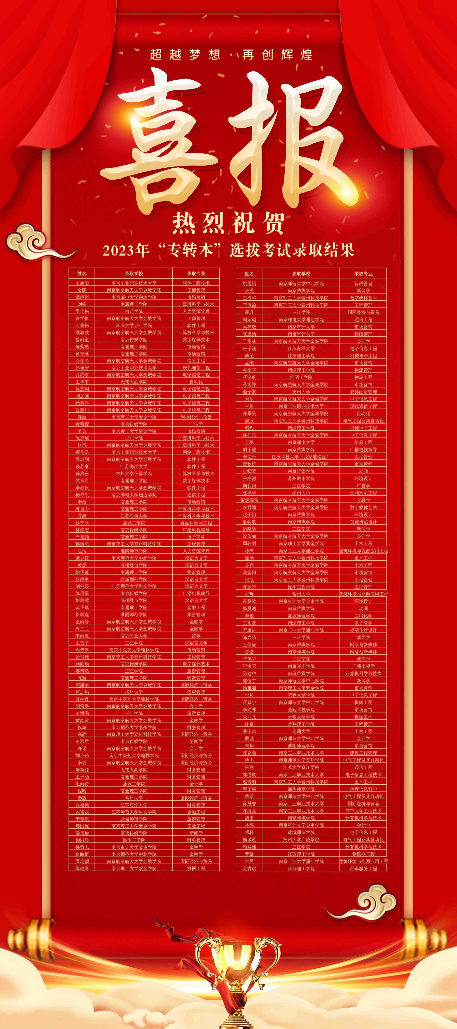 近日,我省2023年“专转本”选拔考试录取结果出炉,黄色直播 166名同学分别被南京审计大学、南京邮电大学、扬州大学、常州大学、金陵科技学院等本科院校录取。工程造价班的陈枫宇同学以总分440分,数学150分满分的优异成绩被扬州大学水利水电工程专业录取。建筑室内设计班的潘奕璇荣获了2022年江苏省职业院校技能大赛(室内艺术设计)一等奖,被南京传媒学院视觉传达设计专业政策性录取。黄色直播 “专转本”录取率在同类院校中继续保持领先,录取院校层次显著提高。
