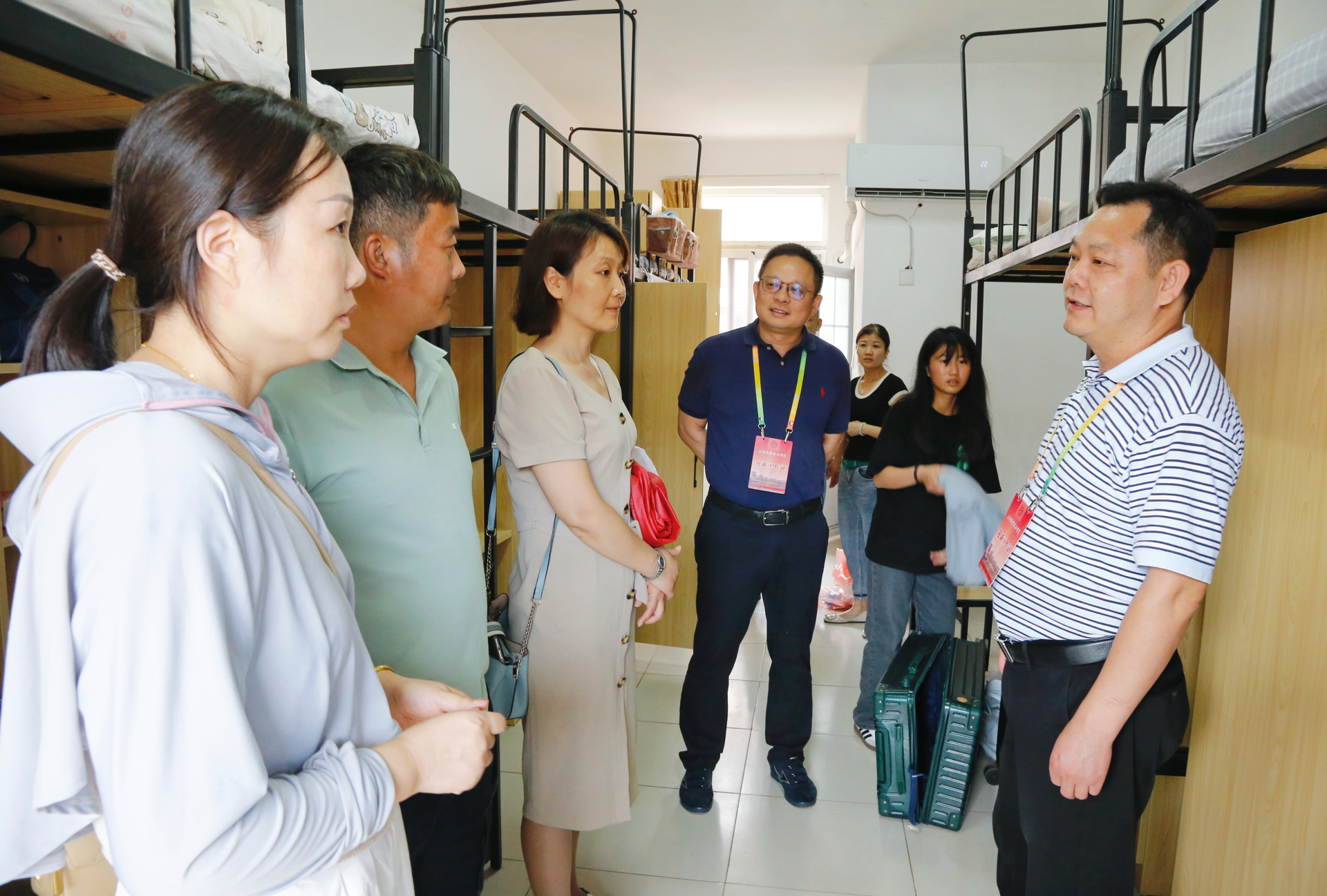 院长孙永荣、院党委书记、政府督导专员孙雷,副院长高斌、赵凯雷、梁薇前往迎新报到点、学生宿舍、食堂、天桥等地,详细了解相关工作情况,向迎新一线的工作人员表示慰问。随后又前往食堂和新生宿舍,与已经报到的新生及家长展开亲切交流。