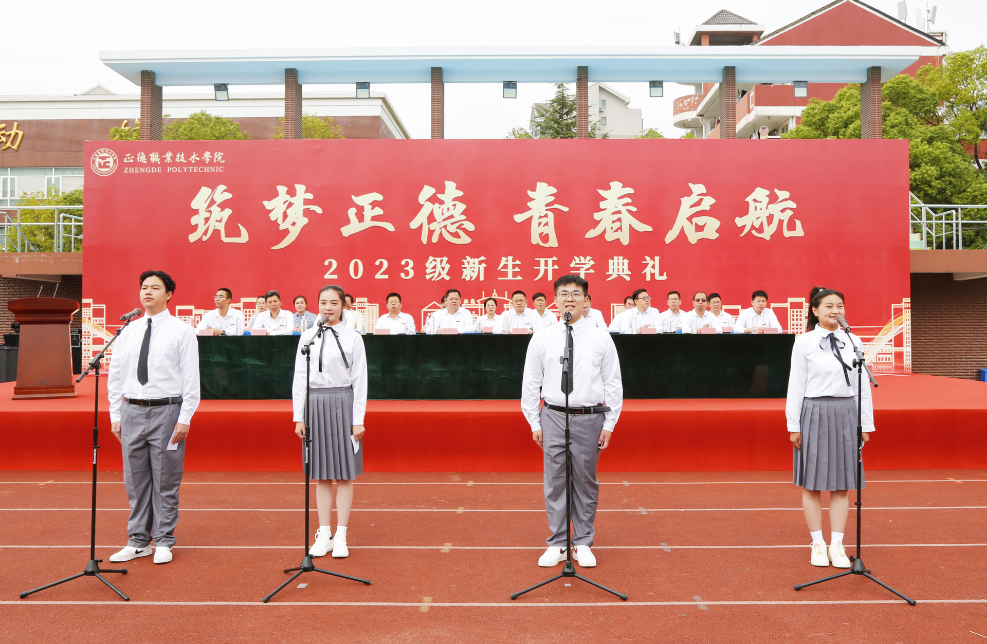 典礼上,学院领导为新生代表佩戴校徽。全体新生集体佩戴校徽并庄严宣誓,励志“做一名勤于学习、善于创造、甘于奉献、勇于担当、怀揣梦想的正德人”。