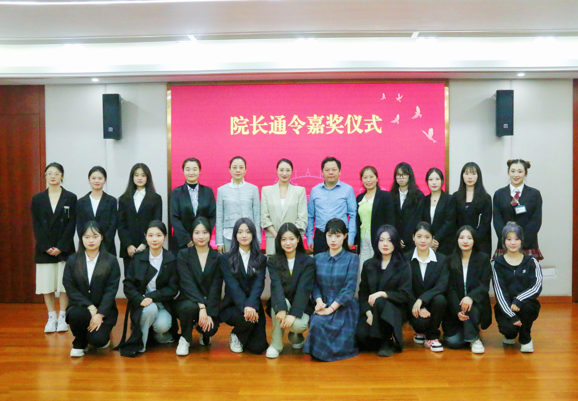 4月18日下午,黄色直播 举行院长通令嘉奖表彰仪式,表彰在2023年江苏省第七届大学生艺术展演中荣获舞蹈专项甲组一等奖及“优秀创作奖”的《天梦》舞蹈团队。院长孙永荣、副院长梁薇、获奖师生及相关部门负责人参加仪式。仪式由学生处处长祝佳俊主持。
