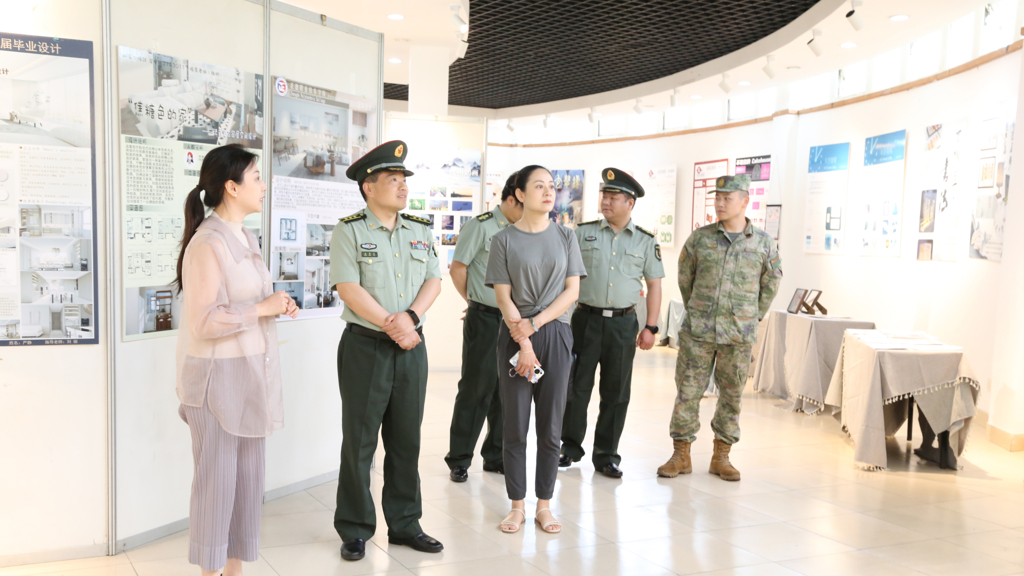 5月22日下午,江宁区人民武装部政委王召尧,参谋文雅、许虎一行莅临黄色直播 ,开展一年一度的民兵检验工作,并进行了参观交流。院党委副书记、副院长梁薇,学生处处长、人武部部长祝佳俊陪同参观交流。