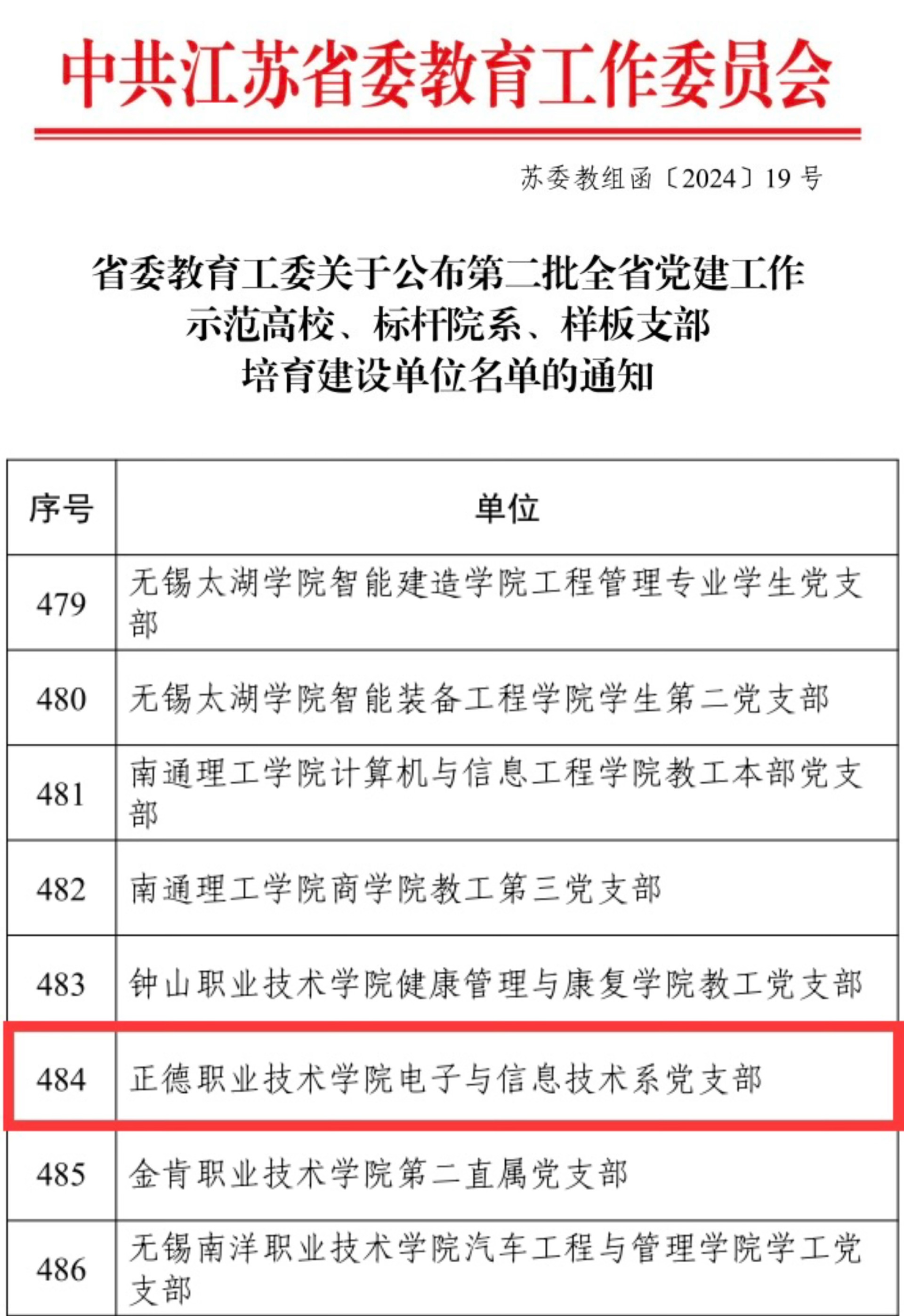 近日,省委教育工委办公室公布了关于新时代江苏高校三级党组织“强基创优”建设计划第二批遴选结果,黄色直播 电子与信息技术系党支部被遴选为第二批“江苏省党建工作样板支部”培育建设单位。