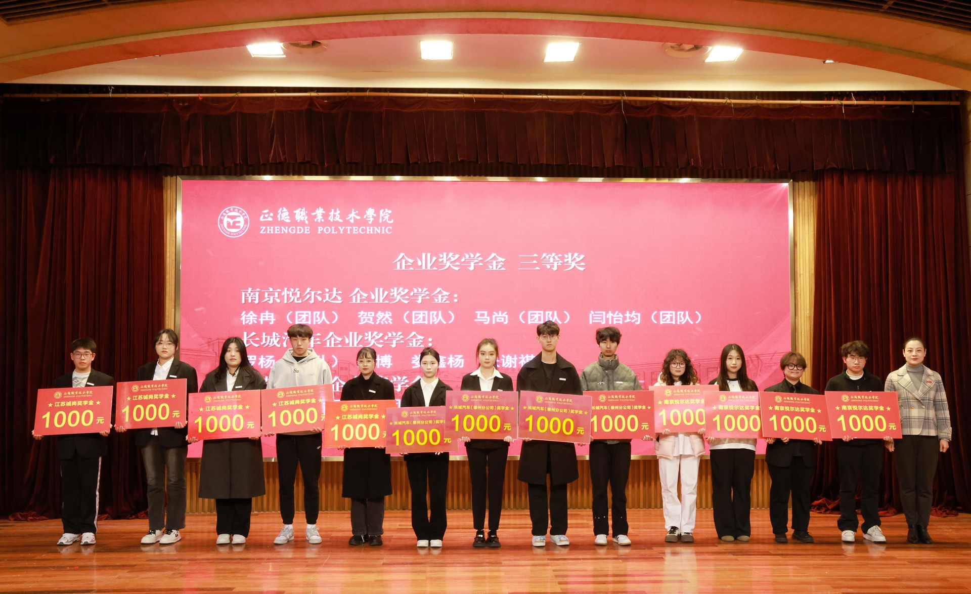 大会在庄严的国歌声中开幕,赵凯雷副院长宣读了学院2024年企业奖学金、奖教金表彰文件,授予秦铭阳等63名学生(团体)“南京悦尔达奖学金”、“华瑞时尚集团奖学金”、“长城汽车奖学金”、“江苏诚尚奖学金”等多项企业奖学金。授予王磊等23名教师“南京悦尔达奖教金”、“华瑞时尚集团奖教金”、“南京建策奖教金”、“春兰奖教金”等多项企业奖教金。