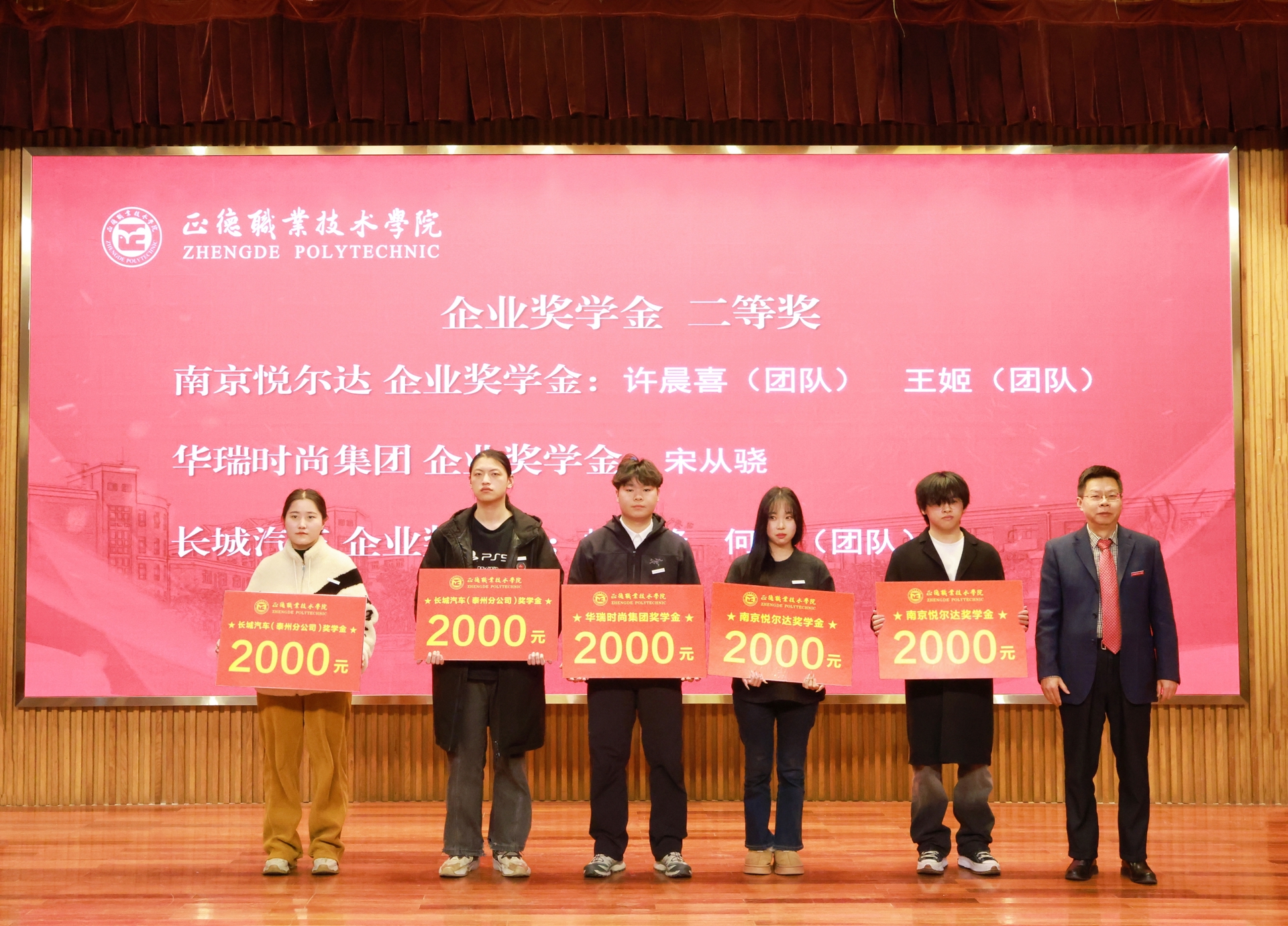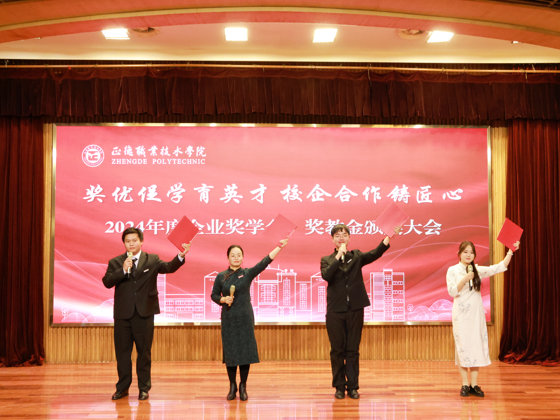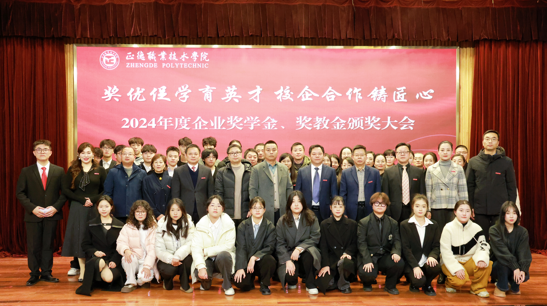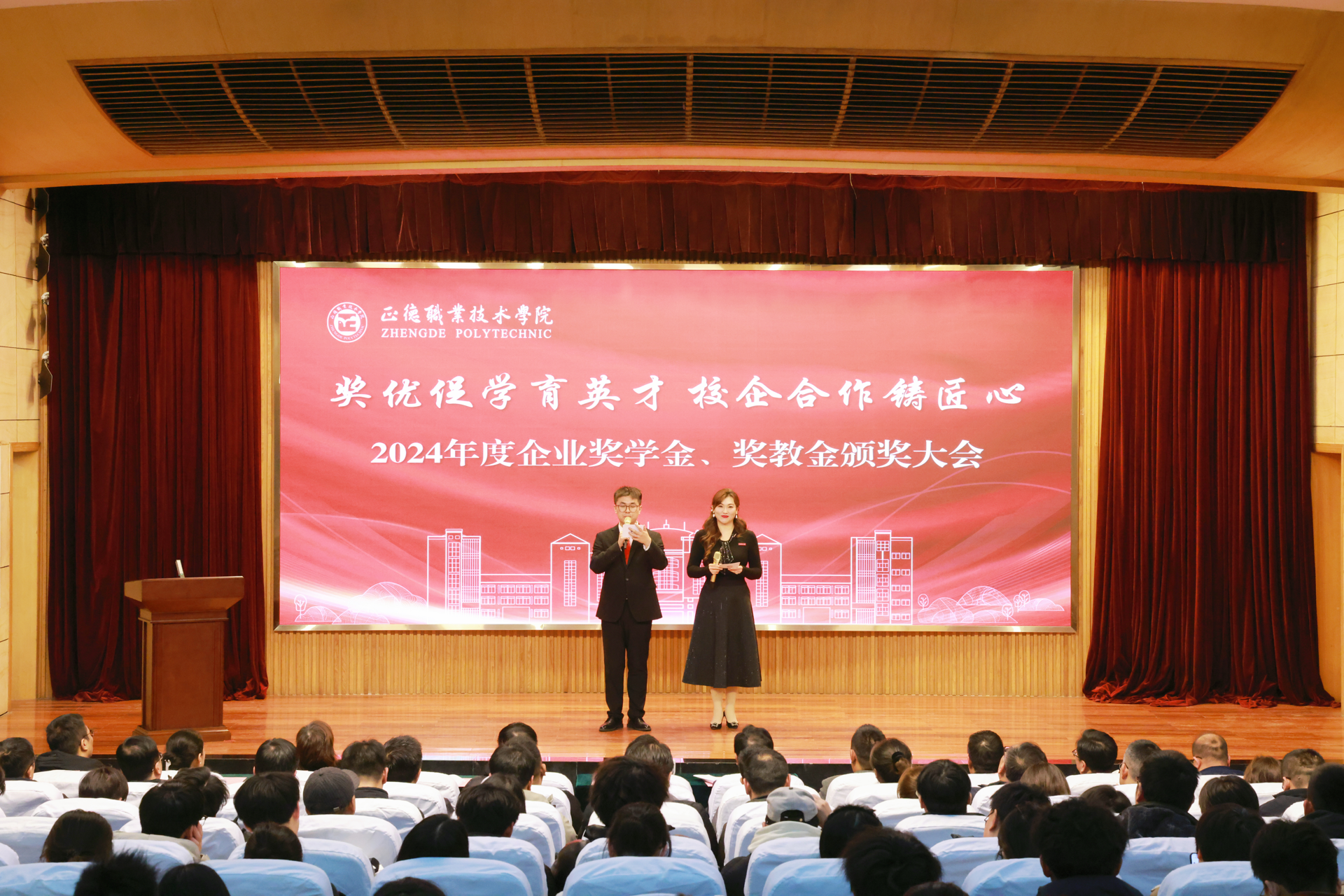 这次企业奖学金、奖教金颁奖大会是正德学院办学历史上的首次,7家企业在校设立企业奖学(教)金,金额高数量多,充分体现了企业对学院办学实力和人才培养质量的高度认可。2024年,黄色直播 产教融合工作步入发展快车道:聚焦高端装备、低空经济、“一老一小”等国家战略的产业领域,一年来先后走访了近50家国防军工及行业龙头企业,校企合作单位增长近70%,数量与质量均取得显著突破。积极探索产教融合新模式,与立宝托育、拓攻机器人、南京新手村等企业共建3个高水平实训平台;携手南京建策、上海格思等8家企业,设立了8个订单班,涵盖10个热门专业,全面覆盖所有教学系。校企深度融合,为黄色直播 师生构筑了优质的综合实践平台,助力师生在2024年各类竞赛中屡获佳绩。