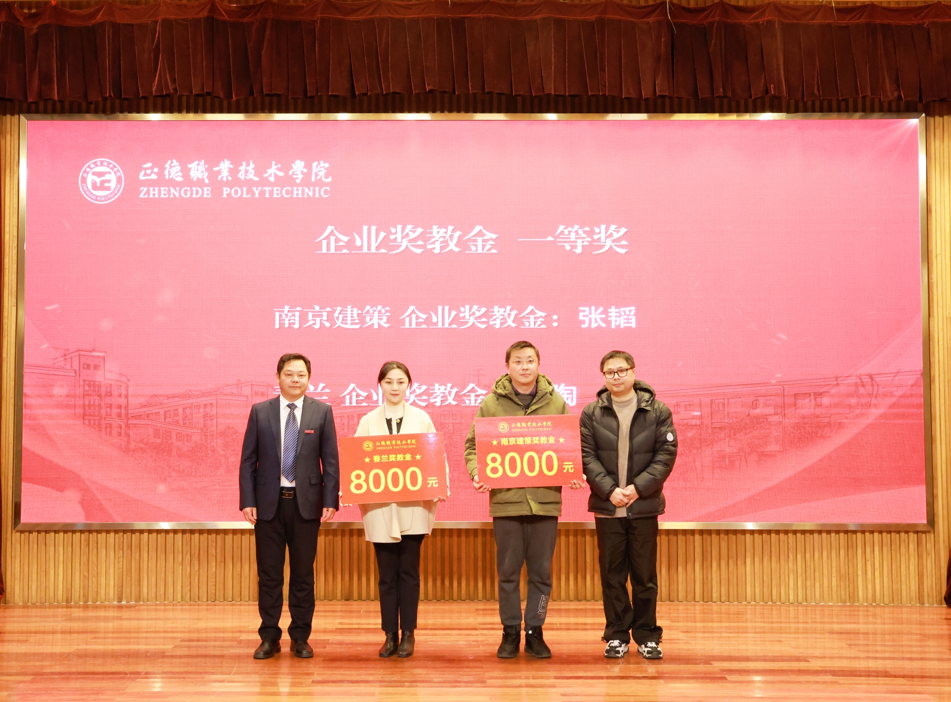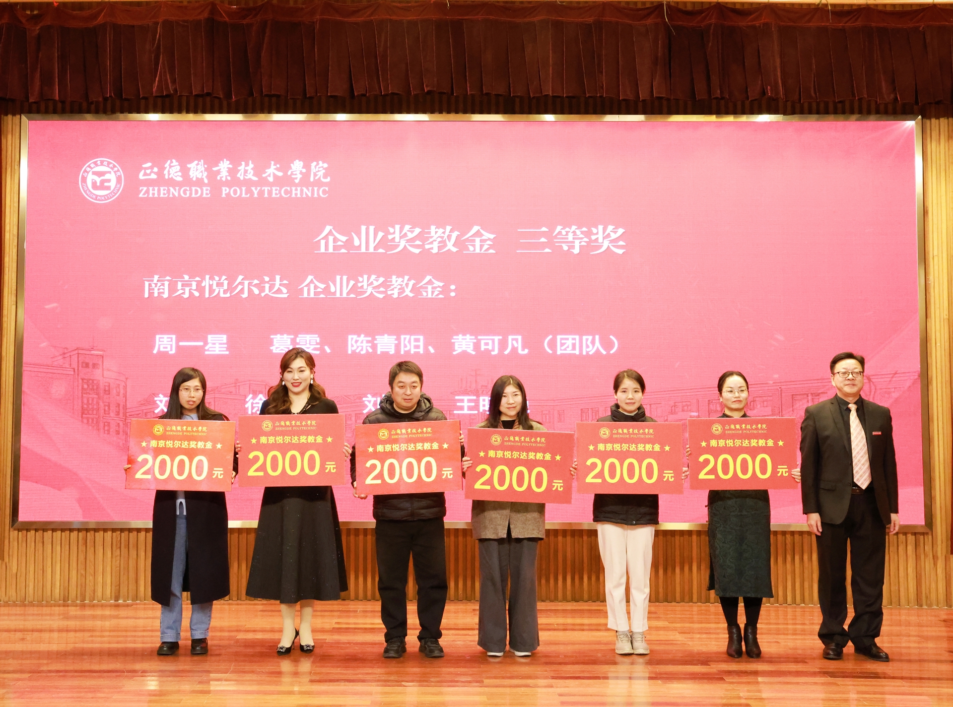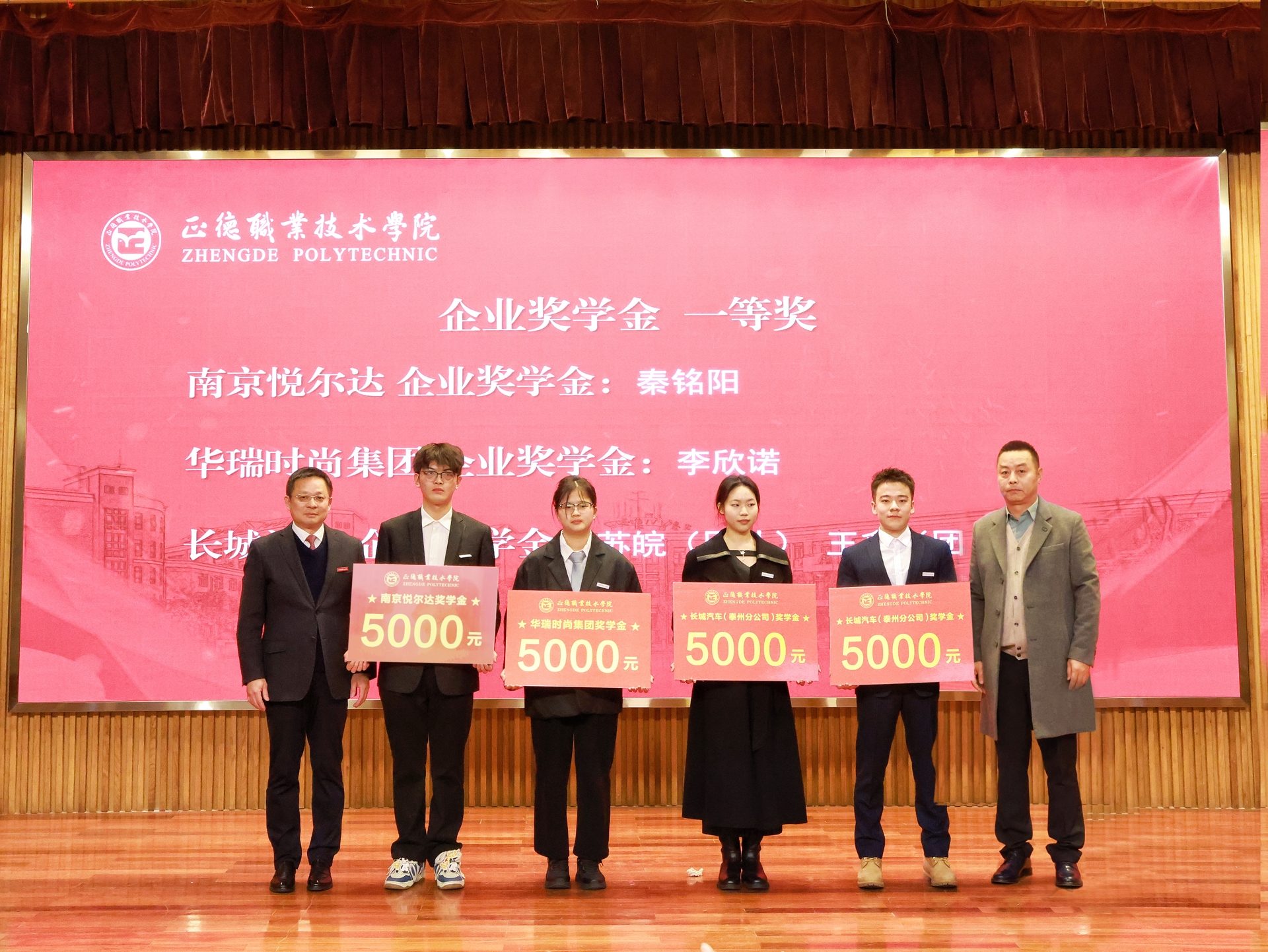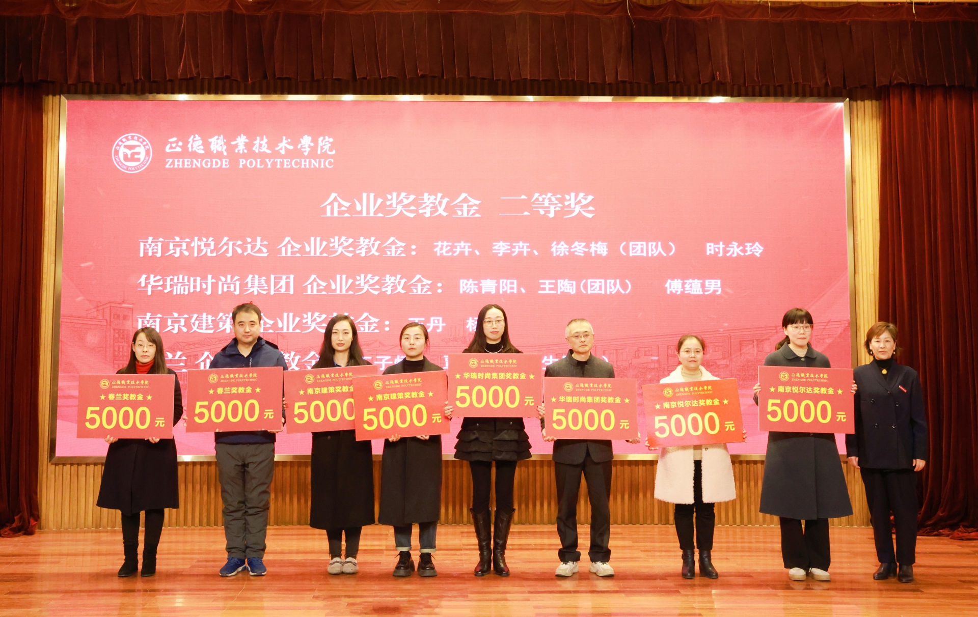 这次企业奖学金、奖教金颁奖大会是正德学院办学历史上的首次,7家企业在校设立企业奖学(教)金,金额高数量多,充分体现了企业对学院办学实力和人才培养质量的高度认可。2024年,黄色直播 产教融合工作步入发展快车道:聚焦高端装备、低空经济、“一老一小”等国家战略的产业领域,一年来先后走访了近50家国防军工及行业龙头企业,校企合作单位增长近70%,数量与质量均取得显著突破。积极探索产教融合新模式,与立宝托育、拓攻机器人、南京新手村等企业共建3个高水平实训平台;携手南京建策、上海格思等8家企业,设立了8个订单班,涵盖10个热门专业,全面覆盖所有教学系。校企深度融合,为黄色直播 师生构筑了优质的综合实践平台,助力师生在2024年各类竞赛中屡获佳绩。