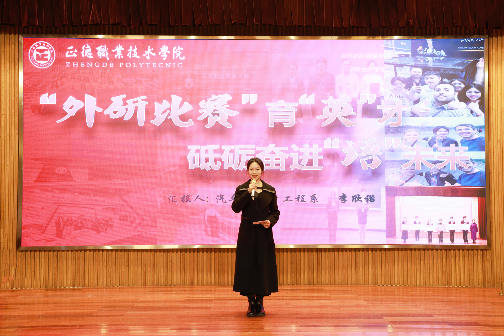 汽车与机电工程系2022级李欣诺作为学生代表发言。她分享了自己在技能发展等方面一步步走向成功的经历,2024年她克服困难,刻苦训练,在第三届“外教社杯”江苏大学生“用英语讲好家乡故事”演讲比赛职业院校组获得特等奖;在中国教育电视台“外研社杯”职场英语挑战赛写作大赛夺得二等奖;在“中国银行杯”江苏省职业院校技能大赛获得二等奖;在江苏省职业院校技能大赛(英语口语)获得二等奖。她在发言中深情表示,会珍惜这份荣誉,牢记责任,不负学校栽培,以更加优异的成绩回报学校,回报社会。艺术与建筑工程系胡雨然作为获奖教师代表发言。胡雨然老师潜心教学、深耕教学,成绩斐然,2024年她先后在国际汉字设计海报展获中华人民共和国驻英国大使馆颁发的入选奖(最高级别);全国数字艺术设计大赛教师组获国赛一等奖、二等奖;第五届“东方创意之星”教师教学创新大赛获省赛特金奖、国赛铜奖;第五届江苏省科学与艺术创新大赛教学技能赛省赛一等奖等15项省级以上赛事奖项,同时带领学生在第六届江苏省高校设计作品展获省赛一等奖1项、二等奖2项;“艺融杯”江苏艺术设计大赛获省赛获金奖1项、银奖2项等19项省级以上赛事中的重要奖项。她分享了个人在实践育人、科研育人、思政育人等方面的心得体会,表示将与其他老师一起努力,深化产学研合作与创新,为社会培养更多优秀学生!