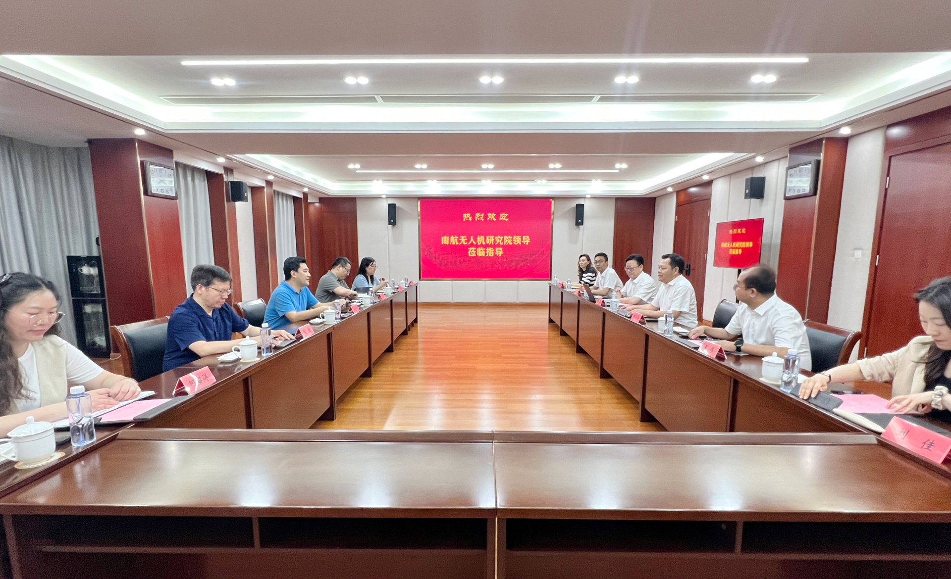 6月6日下午,南京航空航天大学无人机研究院(简称南航无人机研究院)党委书记高小泽、党委副书记、副院长杨波、院长助理熊智、学科科研/教学办主任刘蓉、南京长空科技有限公司飞行服务中心部部长何留洋一行来黄色直播 调研交流。黄色直播 院长孙永荣、副院长赵凯雷、院长助理兼党政办公室主任王伟、院长助理兼招生就业处处长王墀以及相关系负责人参加调研。