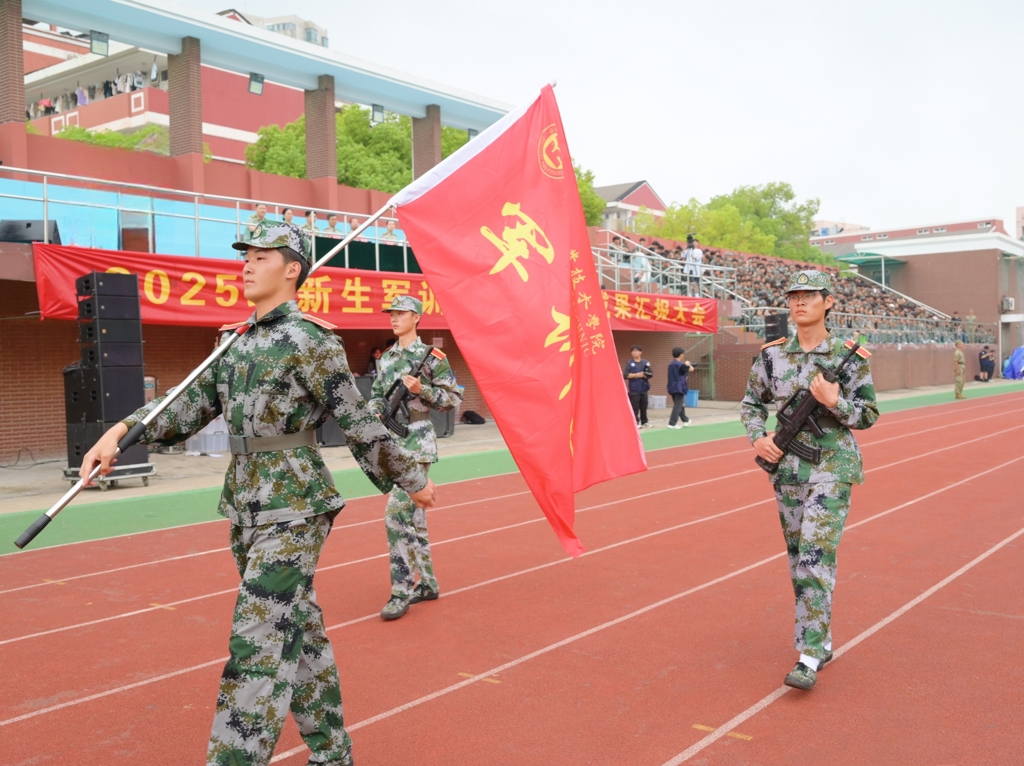 军训汇报展风采,青春飞扬铸华章。为展示军训成果,表彰先进,树立典型,9月29日下午黄色直播 举行2025级新生军训总结表彰暨成果汇报大会。承训部队代表刁嵘峥,院党委副书记、副院长梁薇,院长助理王伟以及军训工作领导小组成员出席。大会由院人武部部长祝佳俊主持。