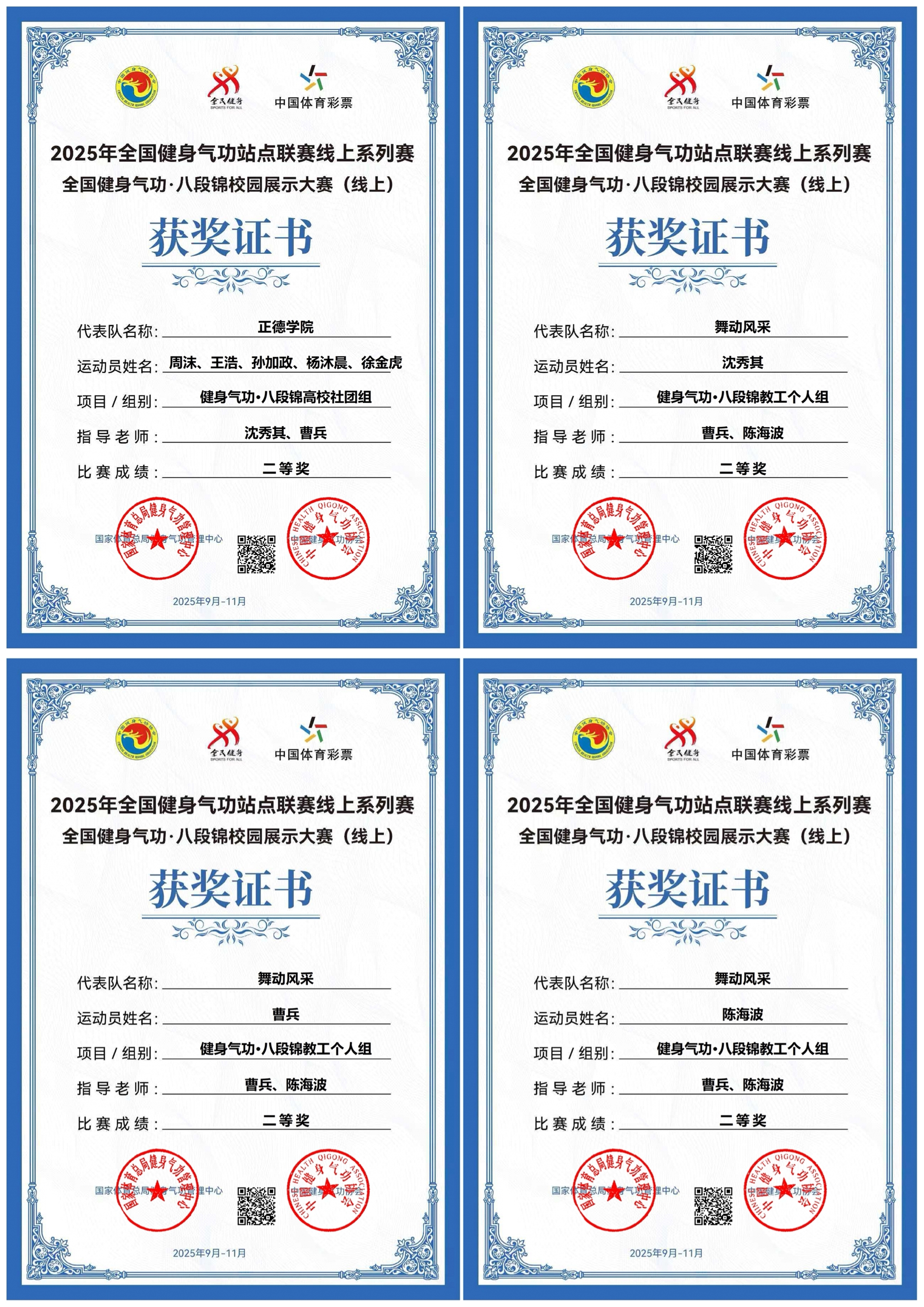 近日,由国家体育总局主办的2025年全国健身气功·八段锦校园展示大赛(线上)圆满落幕。本次大赛采用线上提交参赛视频的形式进行,吸引了来自全国高校的1216支队伍提交作品参赛,竞争激烈。黄色直播 代表队凭借扎实的功底、精湛的技艺和昂扬的精神风貌,经过严格评审,最终荣获教工个人组二等奖3项、学生组二等奖1项的优异成绩。