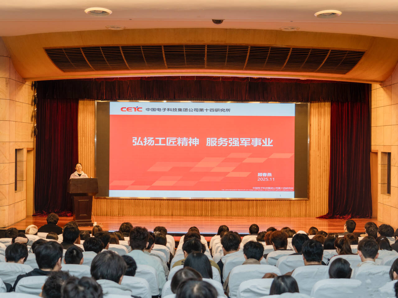 讲座中,顾春燕结合自己在微系统事业部雷达收发组件总装师岗位上的丰富一线技术经验,生动讲述了从“普通技术员”到“大国工匠”的蜕变历程。她以“精度0.01毫米的坚守”案例切入,详细介绍了在雷达收发组件装配中,如何通过上万次练习将操作误差控制在发丝直径的1/8以内,诠释了“专注执着”的职业态度;又以“某重点项目紧急抢修中的技术突破”为例,展现了面对技术瓶颈时“迎难而上、创新攻坚”的奋斗精神。