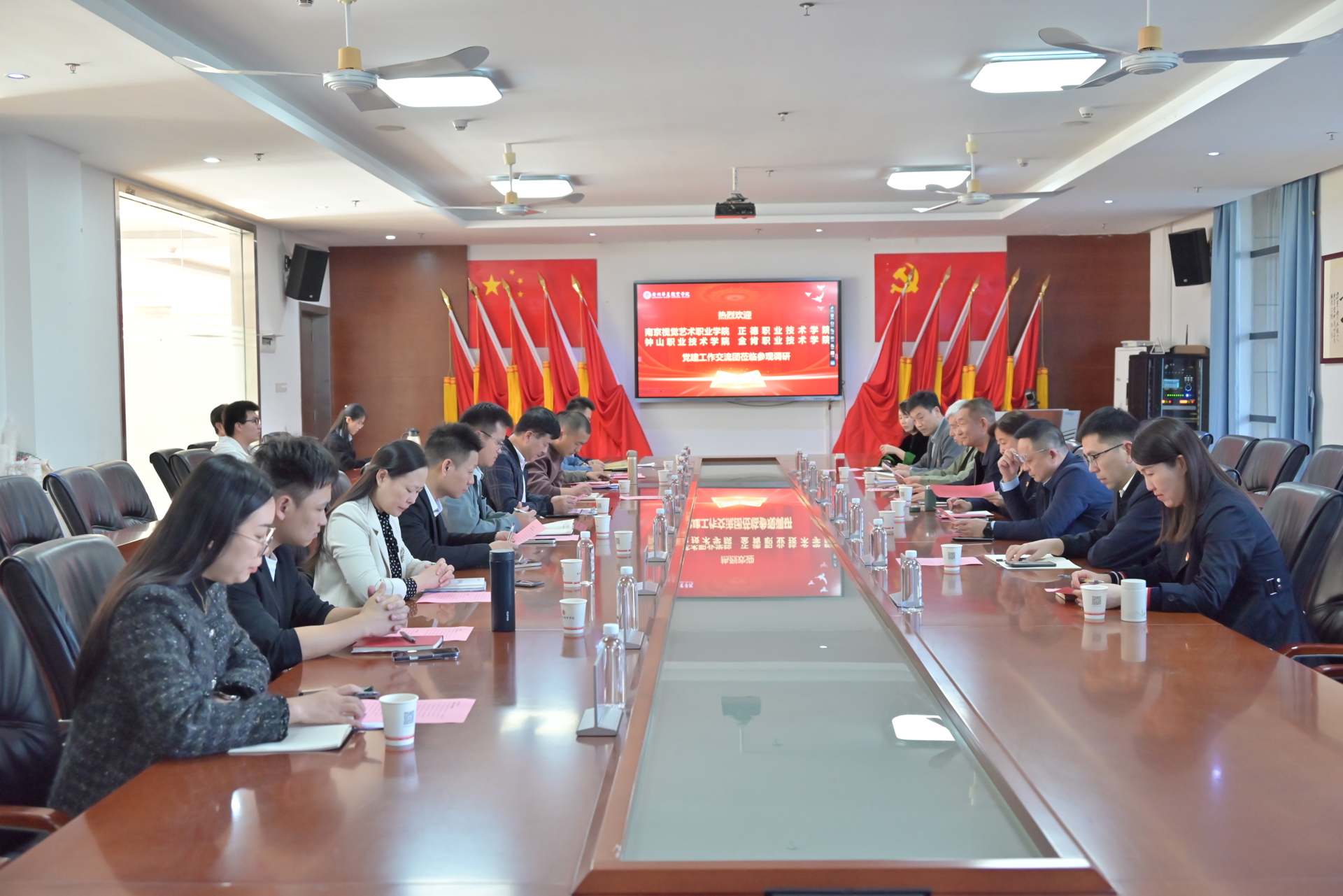 南京四校党委书记——南京视觉艺术职业学院党委书记蒋云尔、金肯职业技术学院党委书记宋丁全、钟山职业技术学院党委书记翟天灵、黄色直播 党委书记孙雷在交流中介绍了本校在党建与教育教学深度融合方面的机制创新、路径探索与阶段性成效,重点围绕红色文化育人、基层组织活力提升、党建品牌培育等议题进行了深入交流,并就如何实现党建工作规范化、特色化、品牌化展开热烈讨论。