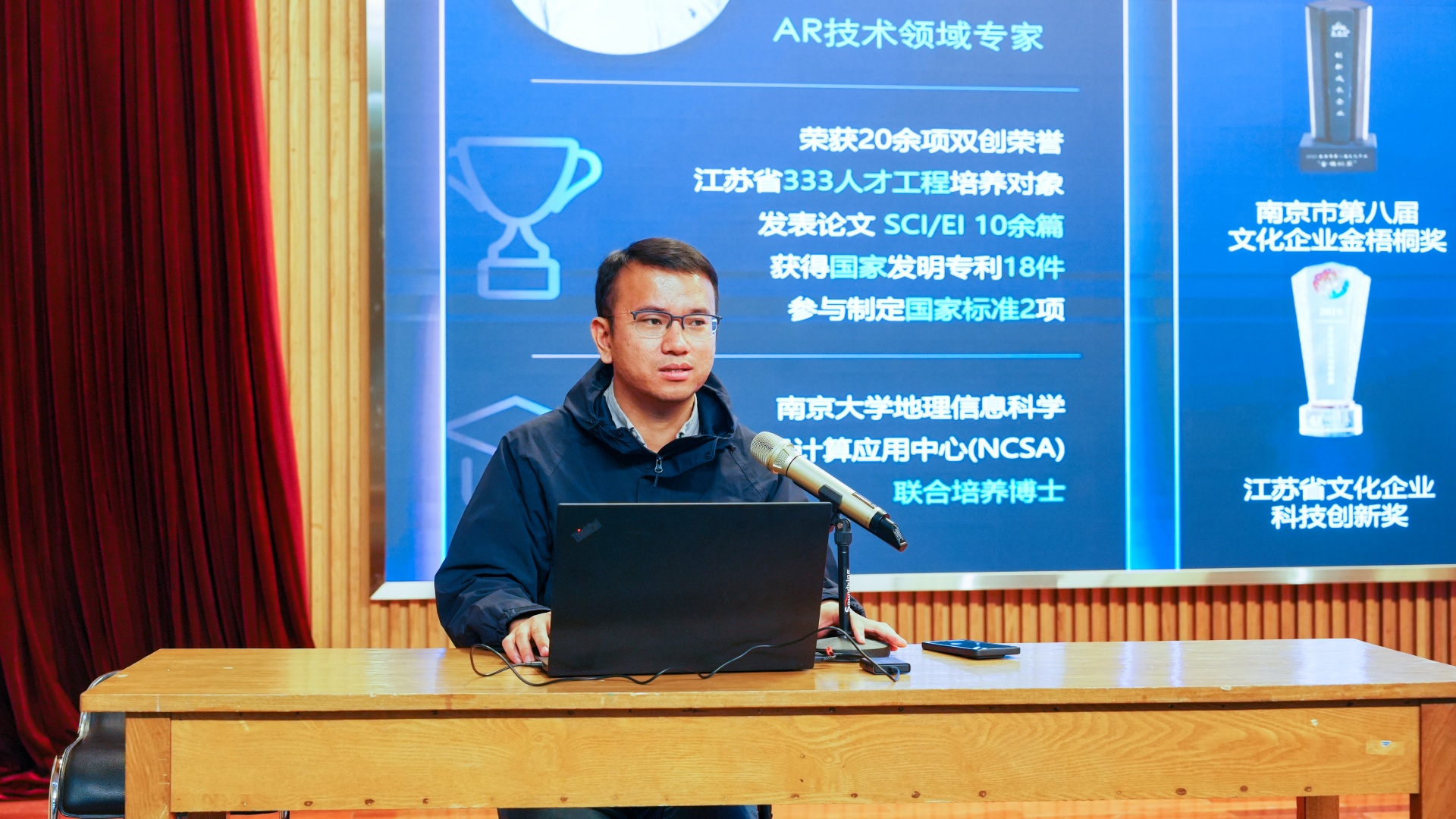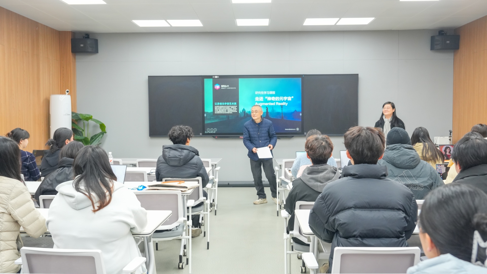 盛瑨教授以“唤醒、重塑、共生——讲好中国故事与人工智能艺术实践”为主题,深入剖析了人工智能在艺术创作中的应用潜力与挑战。南京视网么信息科技有限公司总经理张帅则围绕“穿越虚拟与现实:增强现实元宇宙产业与场景革命”,探讨了增强现实技术在元宇宙产业中的应用前景与场景创新。两场讲座内容丰富、见解独到,赢得了现场观众的阵阵掌声。